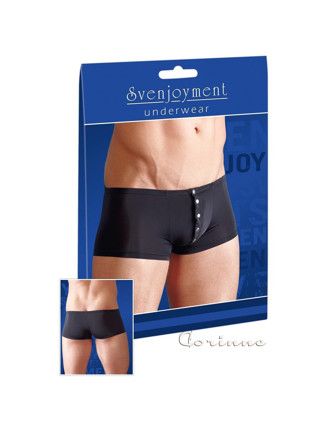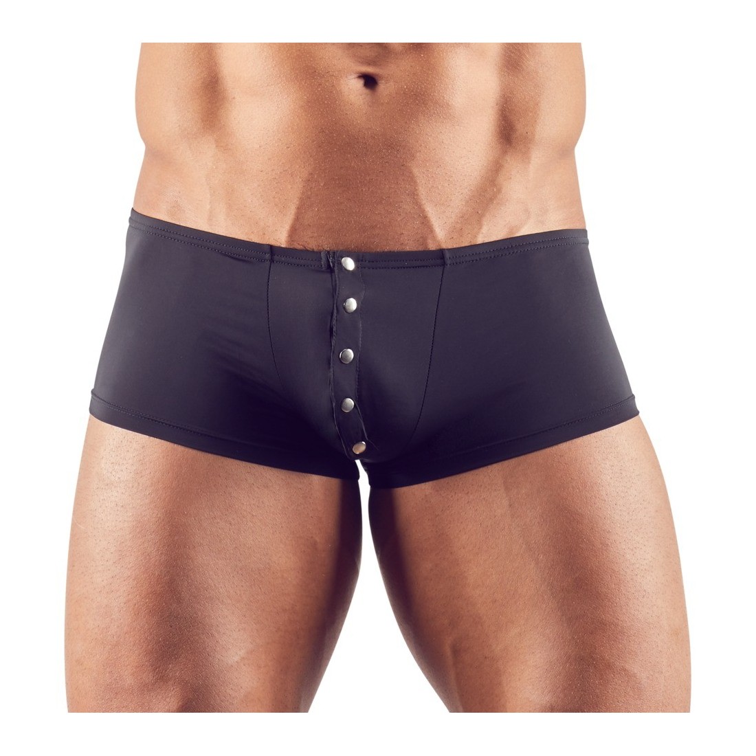 Classico che seduce. enfatizza la tua mascolinit con questi pantaloni elastici leggermente trasparenti con bottoni a pressione color argento e polsini bordati. Nero. 85% poliammide 15% elastan. TAGLIA S.