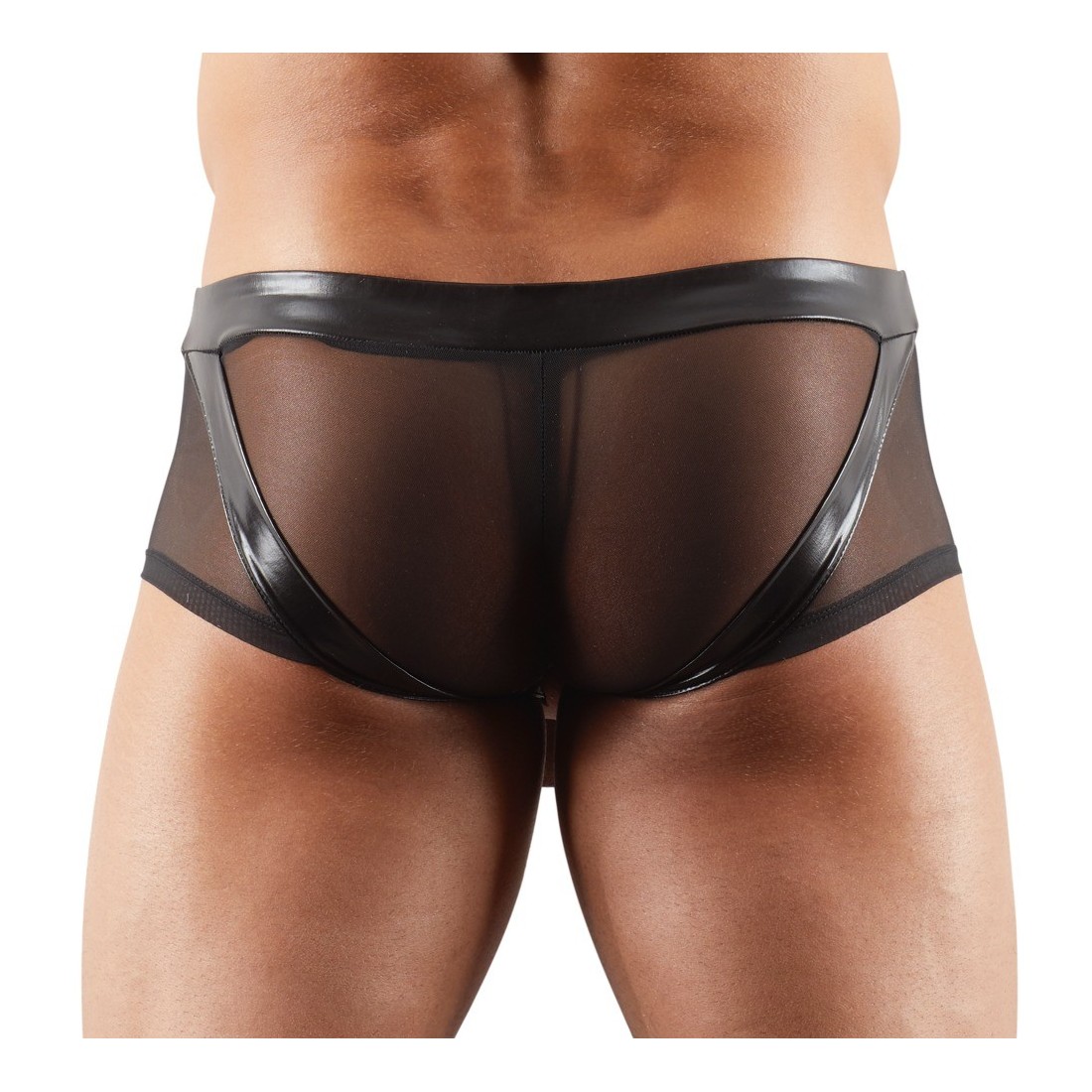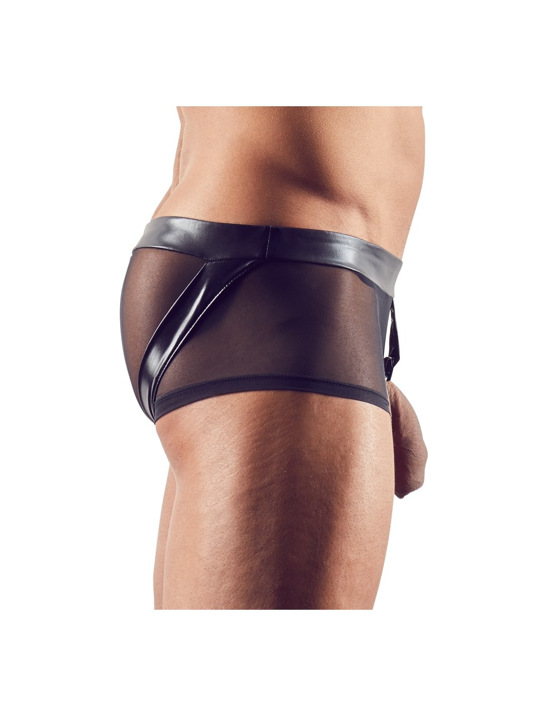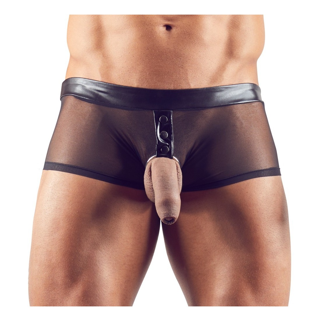 Mostra la tua virilit. pantaloni neri realizzati in rete elettrica meravigliosamente trasparente con anello per il pene fisso (Diametro 5 cm). Cintura e sospensori in effetto bagnato lucido. Powernet 90% poliammide 10% elastan Effetto bagnato 92% poliestere 8% elastan. TAGLIA M.