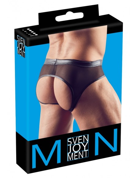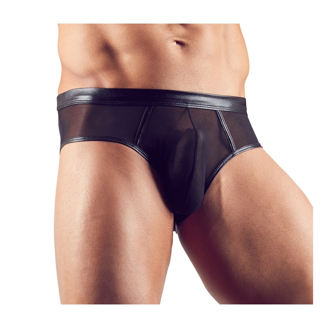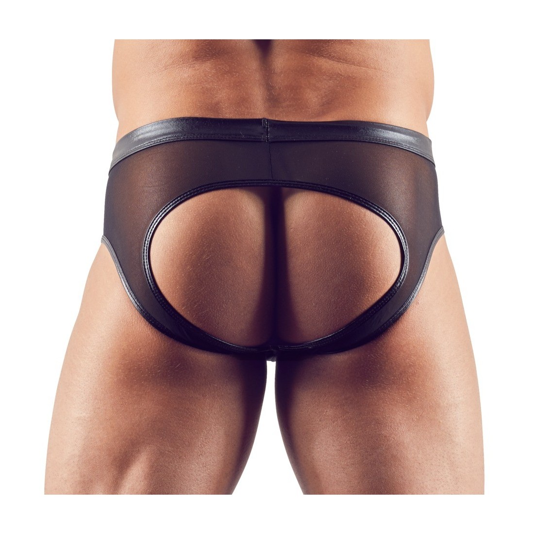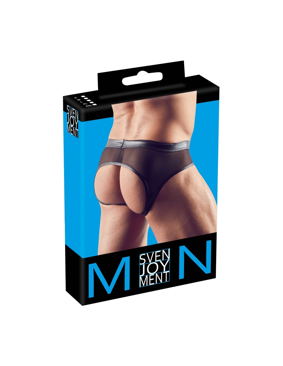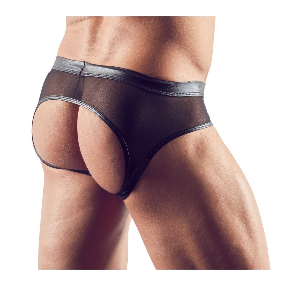 Slip pofrei. Aperto elastico panty Power Net combinato con Wetlook. Nero. 90% poliammide 10% spandex. TAGLIA XL.