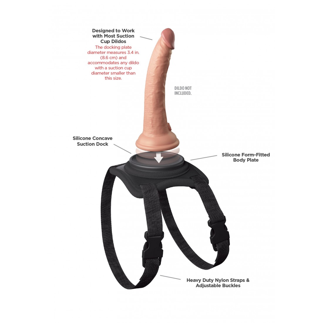 A tutti piace una bella lap dance, ma a volte non vorresti portarla oltre? Bene, ora puoi farlo con la strap-on Body Dock brevettata! Questa cintura è dotata di una piastra di ancoraggio in silicone di alta qualità e fibbie regolabili a sgancio laterale, in modo da poterla indossare comodamente intorno alla tua gamba/coscia mentre il tuo partner ti regala la lap dance più sexy di sempre. Cambiare il tuo accessorio strap-on preferito non è mai stato così veloce o facile! Basta attaccare la ventosa del tuo dildo o vibratore preferito alla piastra di ancoraggio, mentre le cinghie in nylon si regolano facilmente per adattarsi alla maggior parte delle taglie e dei tipi di corpo. E la cosa migliore è che funziona con la maggior parte dei dildo disponibili sul mercato oggi, incluso qualcuno che potresti già possedere. Nessun anello. Nessun bottone. Nessun problema!