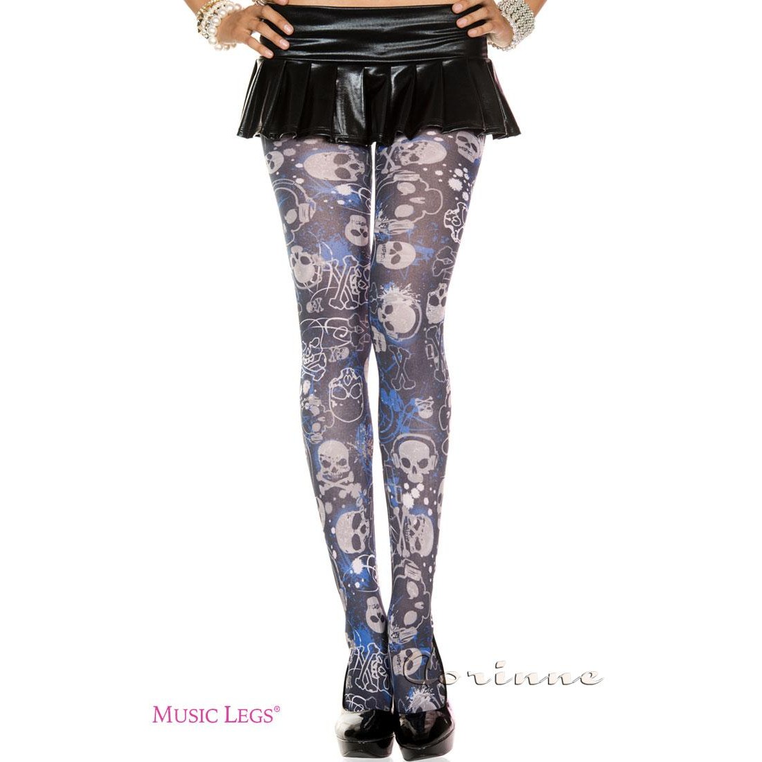 Collant nero/blu coprenti con motivo teschi.