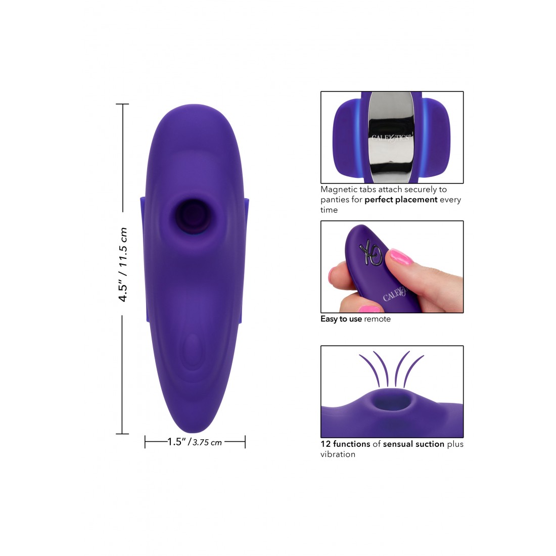 Il Lock-N-Play Remote Suction Panty Teaser è un rompicapo sensualmente succhiante abbinato a un giocoso mini telecomando per avventurosi cercatori di piacere. Il potente rompicapo è dotato di rompicapo a ventosa, linguette magnetiche, 12 funzioni di vibrazione e telecomando. Per mantenere il posizionamento perfetto anche durante il tempo di gioco più attivo, il rompicapo ha alette magnetiche per attaccarsi saldamente a quasi tutti i mutandine. Il telecomando discreto rende facile per te o il tuo amante sfarfallare attraverso le funzioni di vibrazione e aspirazione con il semplice tocco di un pulsante. Quando o dove ti porta la passione, la gamma di raggio di 32,75 piedi di questo vibratore per slip appassionato e le 12 intense funzioni di pulsazione sono pronte per il tempo di gioco. Usa il controller discreto o il pulsante sul rompicapo per scorrere 12 funzioni di pulsazioni martellanti con vibrazioni sincrone. Sia che tu scelga di mantenere il controllo o che tu abbia lasciato il piacere nella mano del tuo partner, questo potente teaser ti farà sicuramente tremare le ginocchia. Dai principianti arrossiti agli esperti erotici, questa vibrazione beata del proiettile aggiunge vibrazioni versatili a qualsiasi scatola dei giocattoli. Ricarica la tua passione in solo 1,5 ore con il cavo USB in dotazione per un massimo di 45 minuti di stimolazione ad alta intensità.