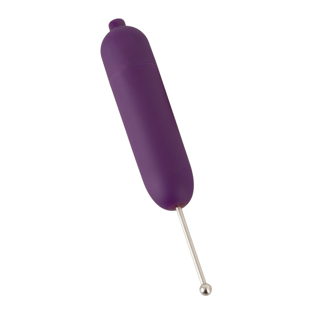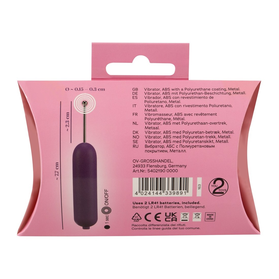 Mini vibratore Spot-on Clit Vibrator di You2Toys con sottile punta a sfera in metallo per una stimolazione precisa del clitoride e di tutti gli altri punti di piacere esterni. Il vibratore clitorideo, piccolo e leggero, sta comodamente in mano grazie alla sua impugnatura rivestita di seta e si aziona comodamente premendo un pulsante. Può essere meravigliosamente incluso in ogni gioco a due o in solitaria. Inoltre, può essere riposto in qualsiasi tasca, perfetto per gli spostamenti.