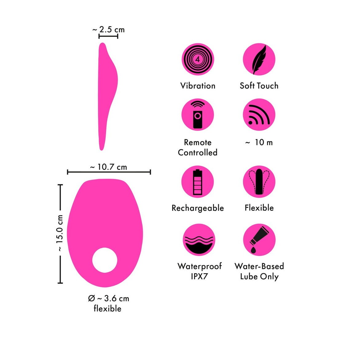 Cuscino vibrante multifunzione RC di Coup!es Choice con telecomando. Il morbido cuscino vibrante con anello elastico può essere utilizzato in diversi modi. Può essere indossato sull'asta del pene durante il sesso per sostenere l'erezione e fornire un ulteriore piacere a entrambi grazie alle vibrazioni. Il giocattolo flessibile può anche essere comodamente tenuto in mano come vibratore da appoggiare per la stimolazione esterna. Il cuscino in silicone è adatto anche come vibratore da cavalcare, per cavalcare e strofinare. Un giocattolo multifunzionale per un divertimento multiplo da soli e in coppia!