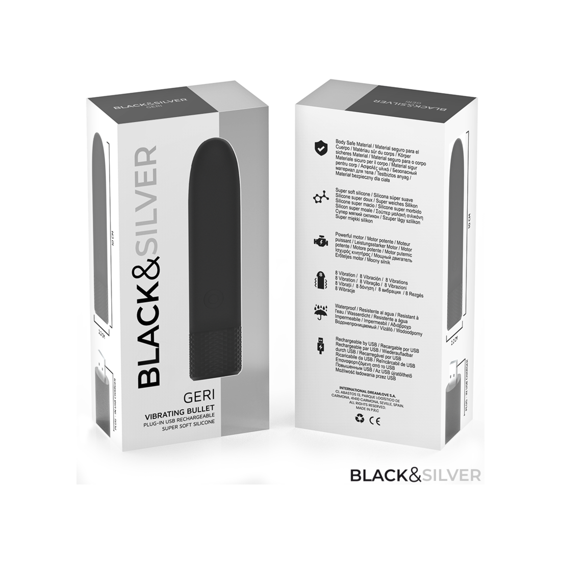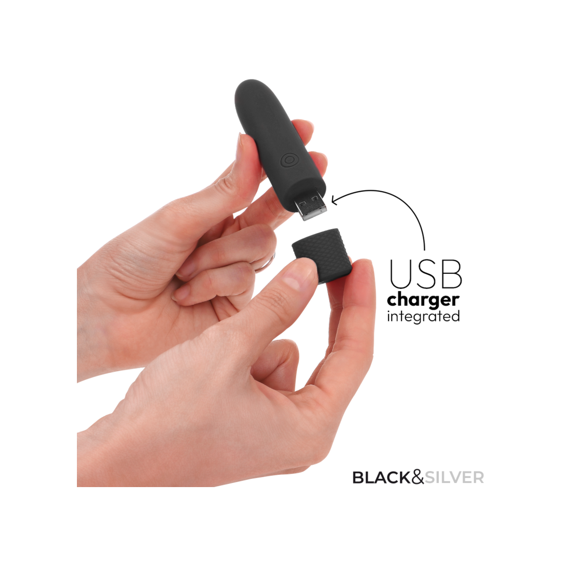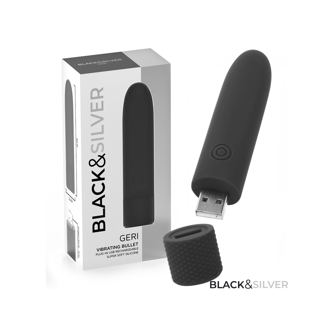BLACK & SILVER - GERI USB RICARICABILE VIBRANTE BULLET 8 VIBRAZIONI NERO 10 X 2,2 CM