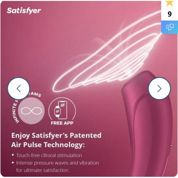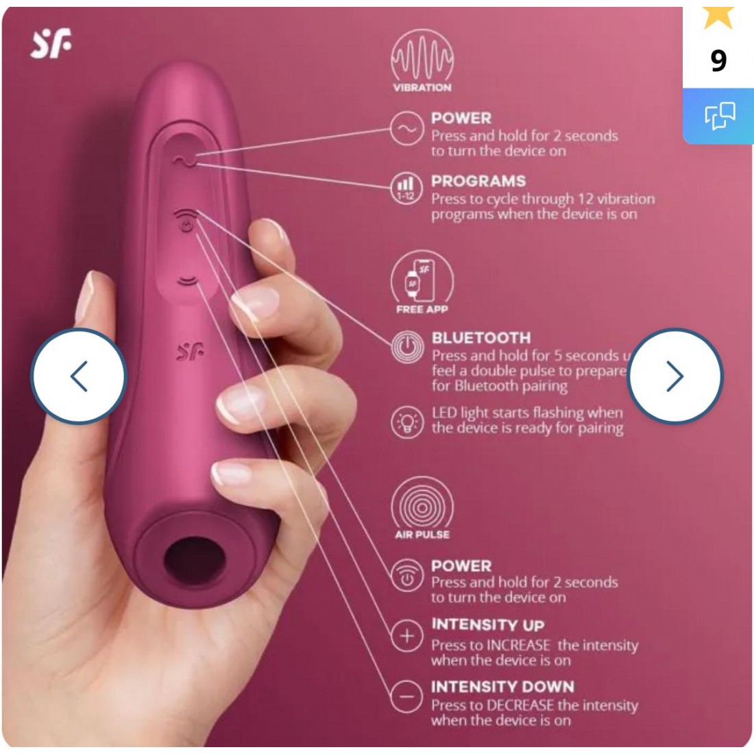 Satisfyer Curvy 1+: Estimulación del clítoris con tecnología Air-Pulse y vibraciones.