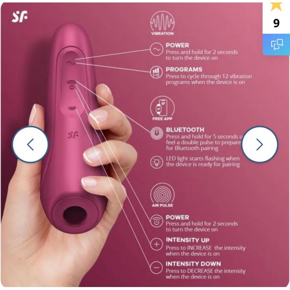 Funciones: 11 patrones de vibración predefinidos, 11 patrones de pulsaciones de aire predefinidos.