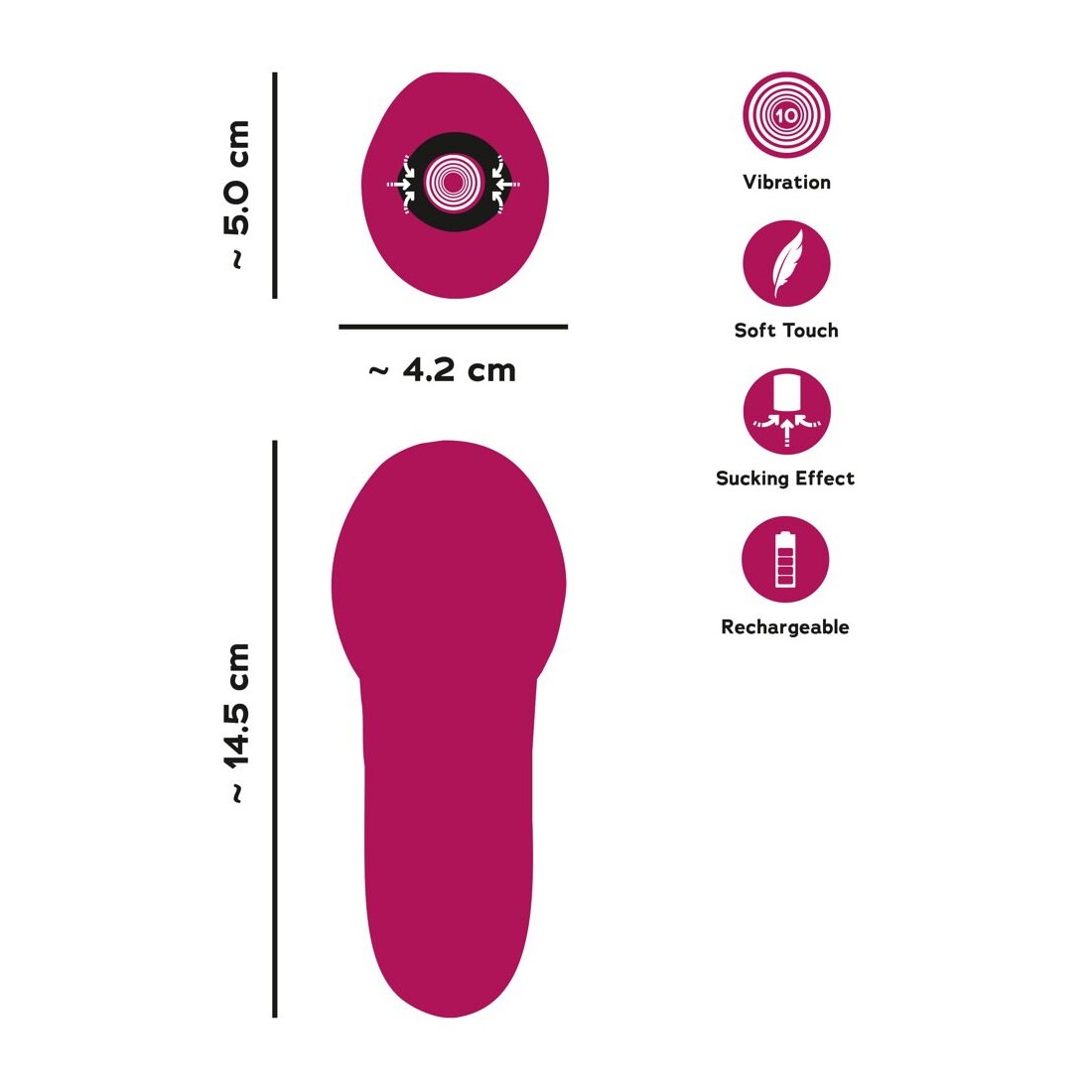 Il silenzioso vibratore Oral Fun inizia il suo eccitante gioco con la semplice pressione di un pulsante. Le modalità di aspirazione e vibrazione possono essere controllate separatamente e combinate tra loro. Divertimento orale personalizzato per clitoride, vulva, capezzoli, ano e altre zone erogene. Il toy, leggero ed ergonomico, si adatta perfettamente alla mano e può essere utilizzato in modo intuitivo. Il silicone morbido come la seta accarezza la pelle e i punti caldi e garantisce il massimo comfort durante le coccole.
