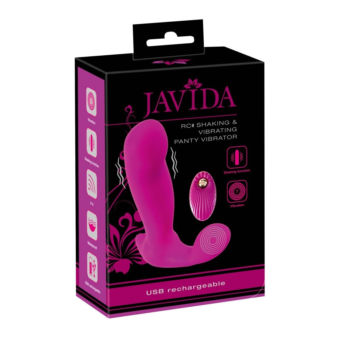 Vibratore impermeabile RC Bumping & Vibrating Panty di Javida con albero che scuote e vibratore clitorideo flessibile. 7 modalità di scuotimento e 7 modalità di vibrazione possono essere comodamente controllate con il telecomando con la semplice pressione di un pulsante - anche dal tuo partner ad una distanza fino a 8 metri.
