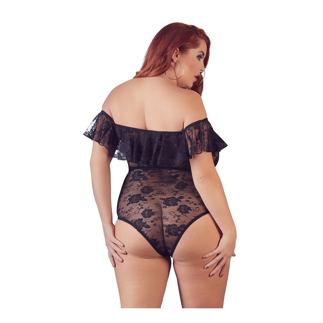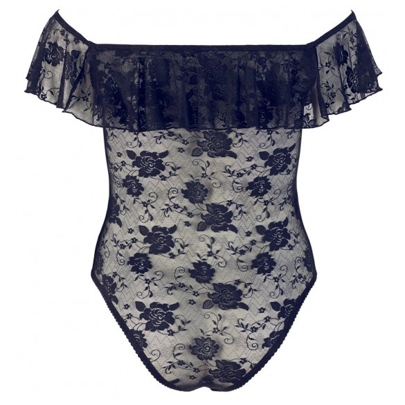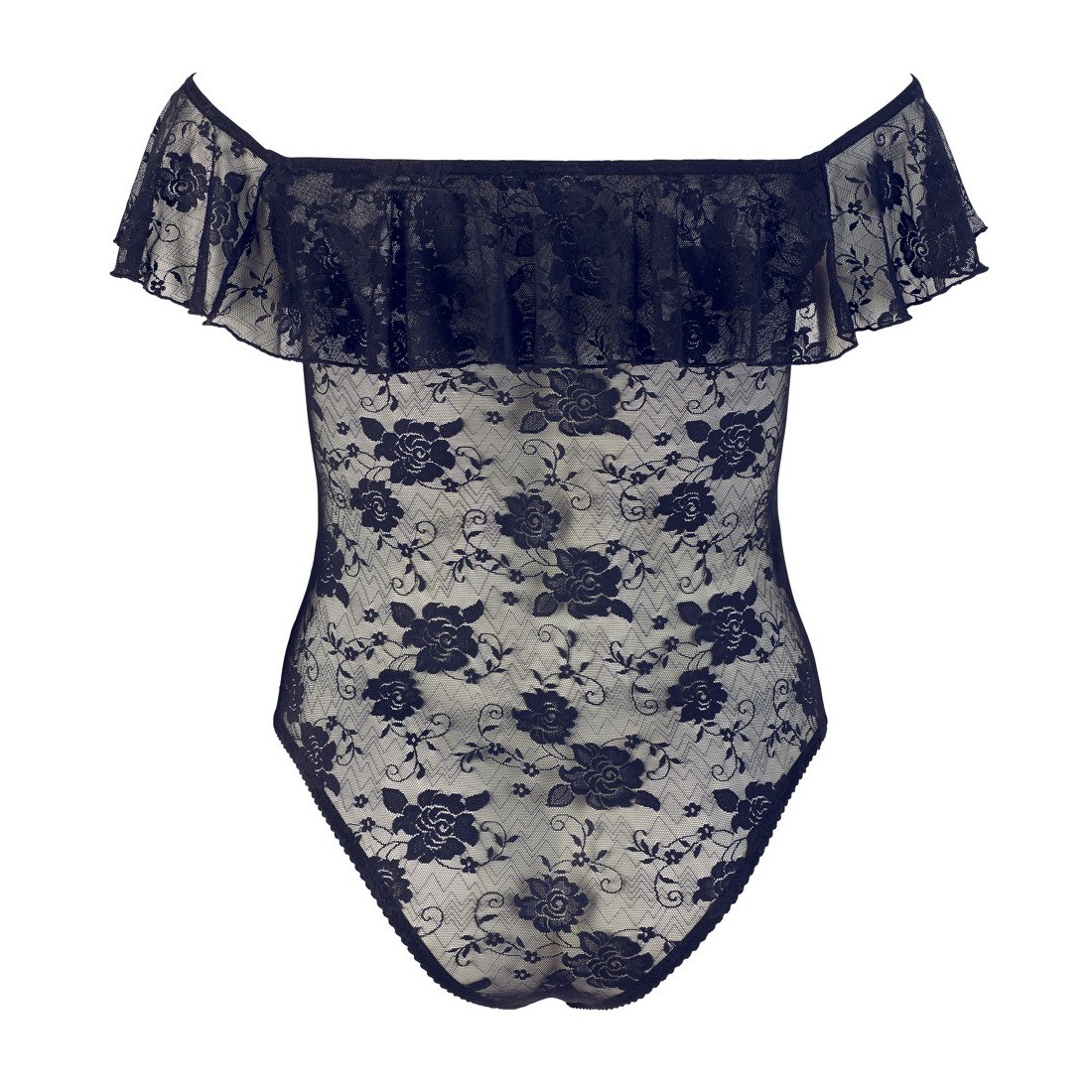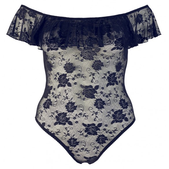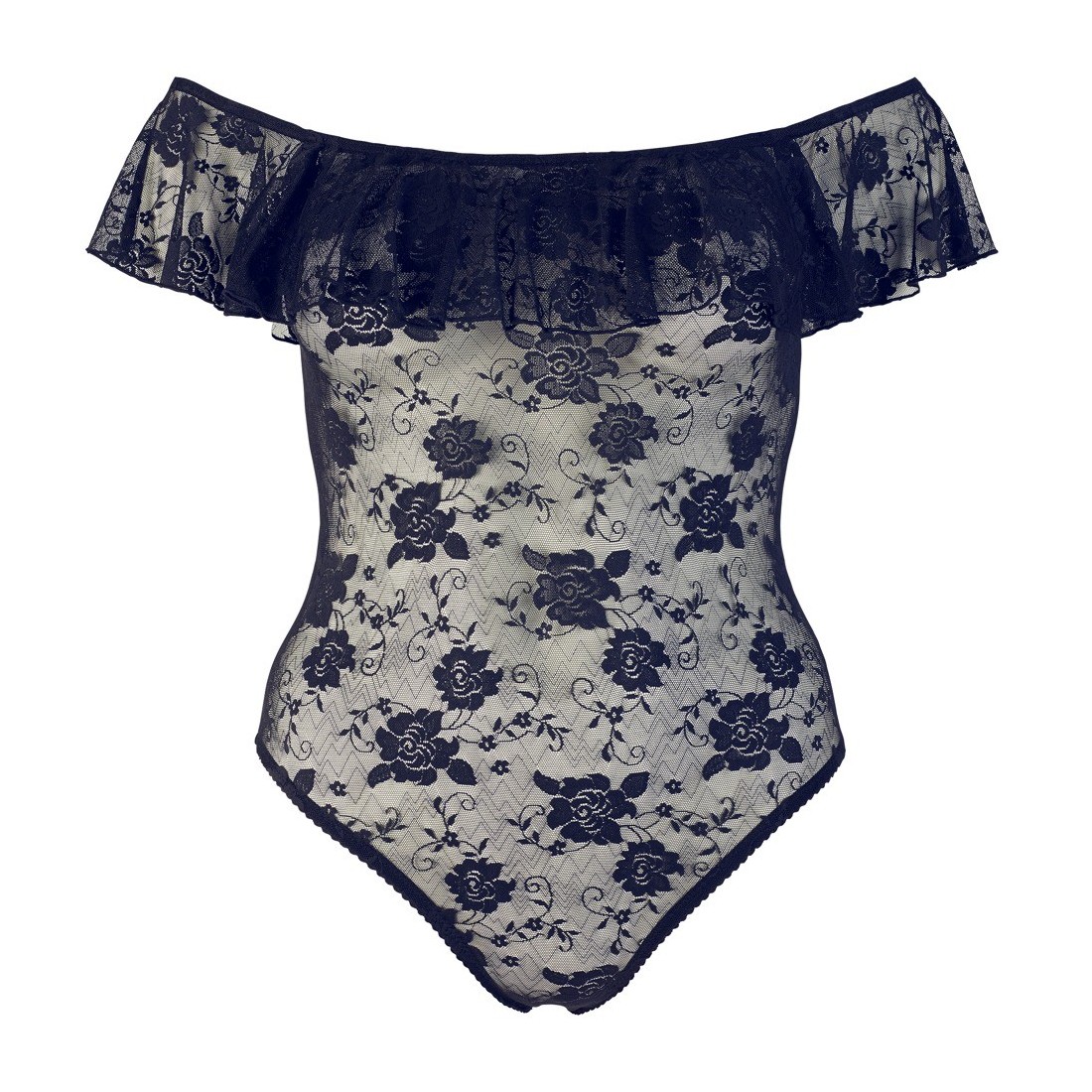 Troppo brutto per essere portato sotto! Monopezzo trasparente in morbido pizzo nero. Scollo elastico con ampia balza di pizzo può essere indossato anche sulla spalla à la Carmen. 90% poliammide, 10% elastan.