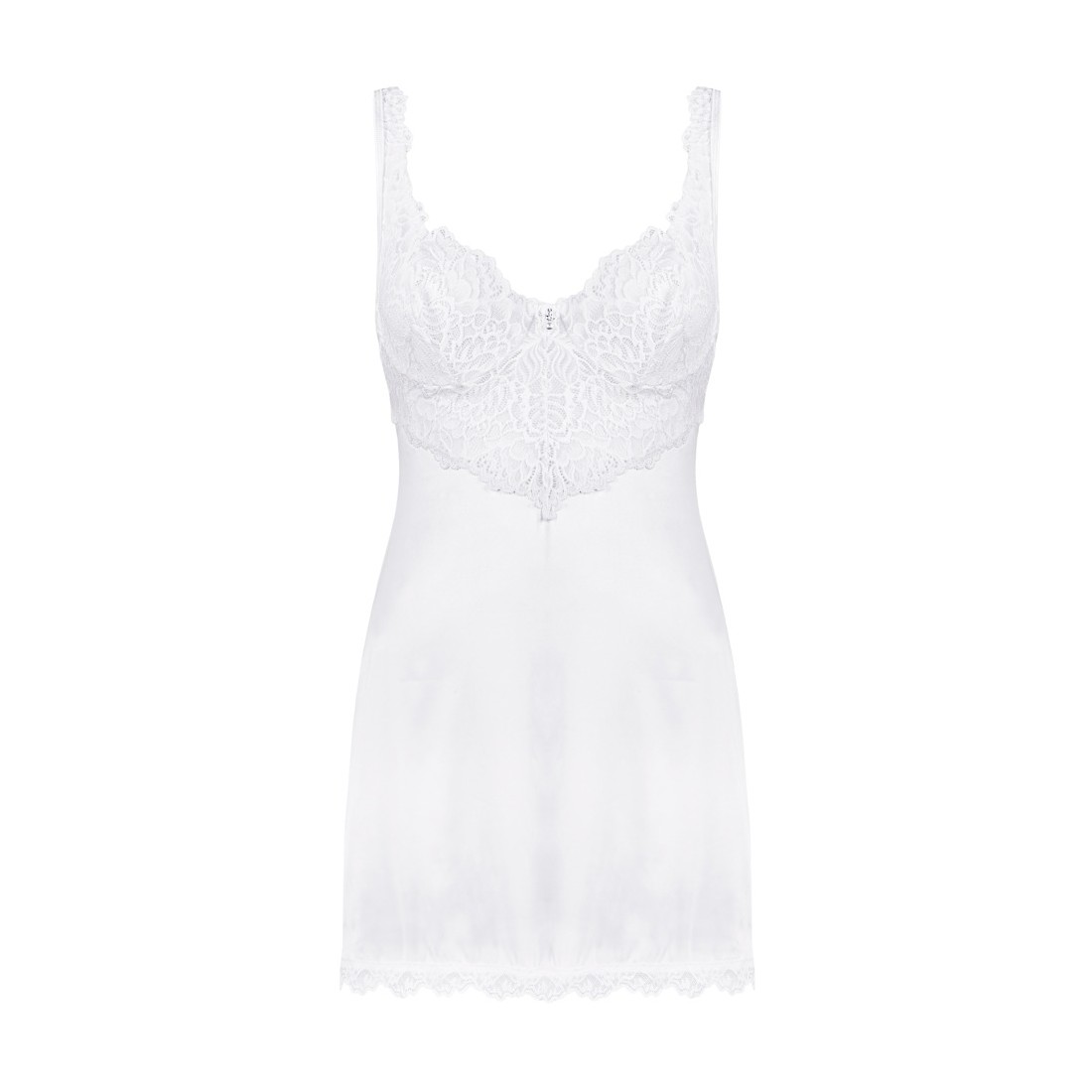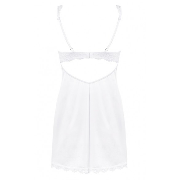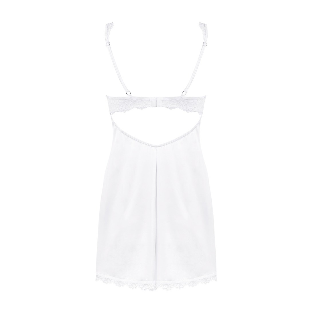 Un abito intimo affusolato e perizoma nel set Amor Blanco di Obsessive. La parte superiore è realizzata interamente in pizzo e ha anche le coppe con ferretto. C'è un delicato pizzo che decora l'orlo. È anche morbido ed elastico, il che significa che è estremamente comodo da indossare. Sul retro è presente una chiusura a gancio. Le cinghie in pizzo possono essere regolate per adattarsi. Il bellissimo perizoma classico aggiunge il tocco finale a questo look seducente.
