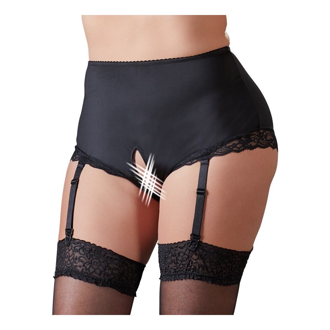 Slip ouvert a vita alta con delicato pizzo a fiori all'estremità della gamba. Le seducenti bretelle sono regolabili e possono essere rimosse completamente se necessario. Con un taglio che valorizza la figura e un tessuto solido nella parte anteriore, che modella dolcemente il ventre.