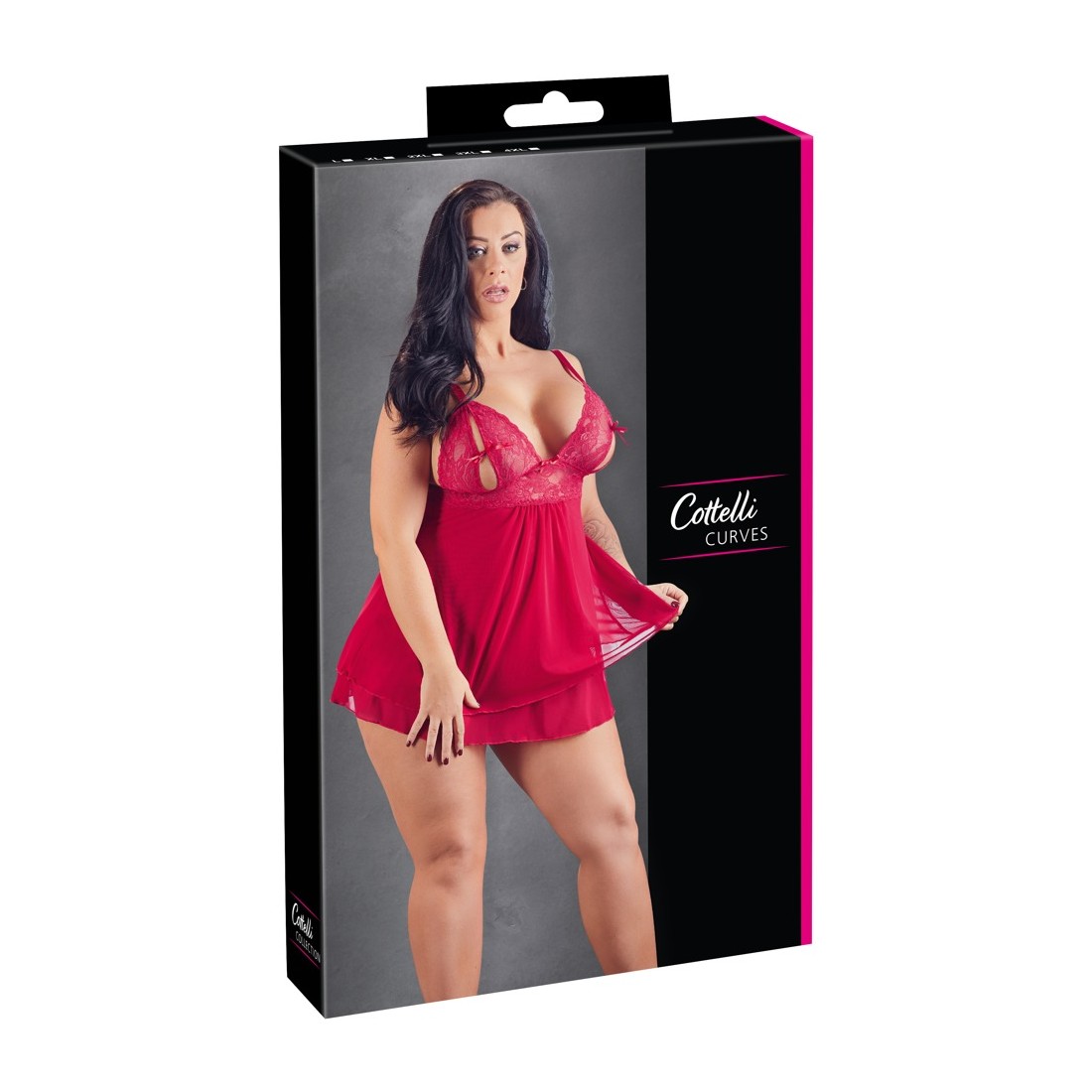 Babydoll rosso con passanti di legatura sulle coppe in pizzo XL