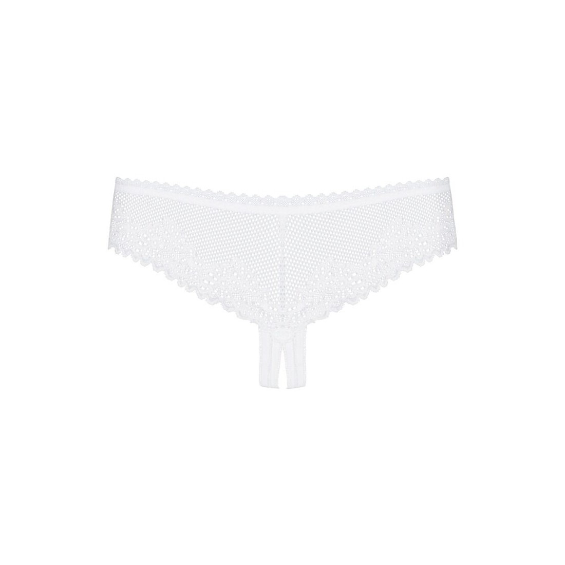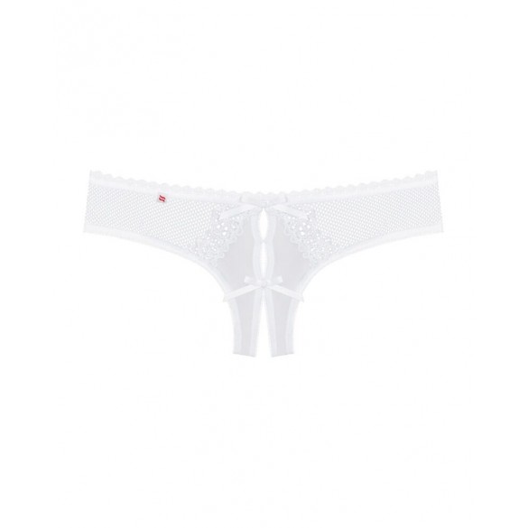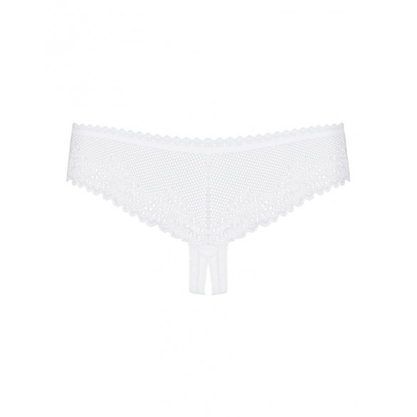 Perizoma bianco trasparente senza cavallo Alabastra di Obsessive, realizzato in delicato tulle, rete fine e dolce pizzo. Morbido ed elasticizzato su tutta la superficie per un comfort totale. Perizoma aperto sul davanti e decorato con fiocchi di raso.