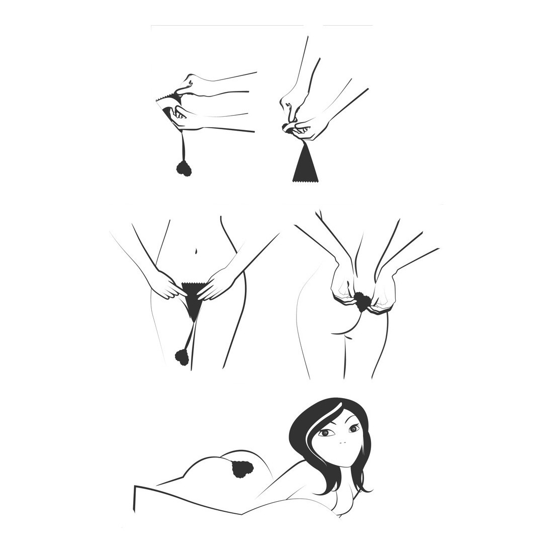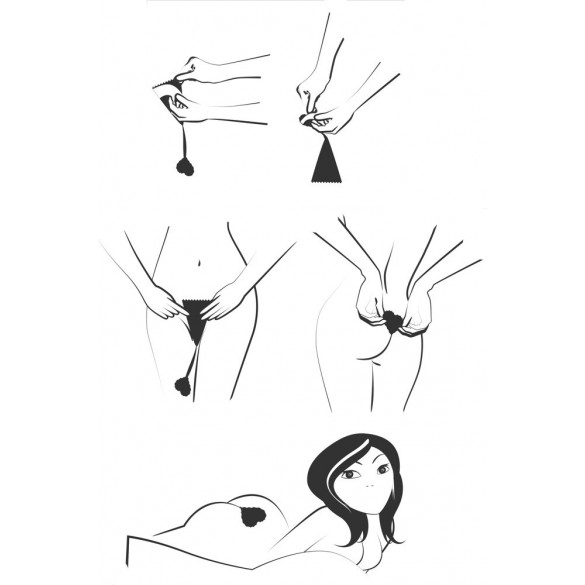 Incredibilmente invisibile! Innovativo tanga adesivo nero da attaccare sulla zona pubica e sul coccige. Munito di tassello in cotone nella zona del cavallo. Riutilizzabile lavabile ed adatto per taglie dalla S alla L.