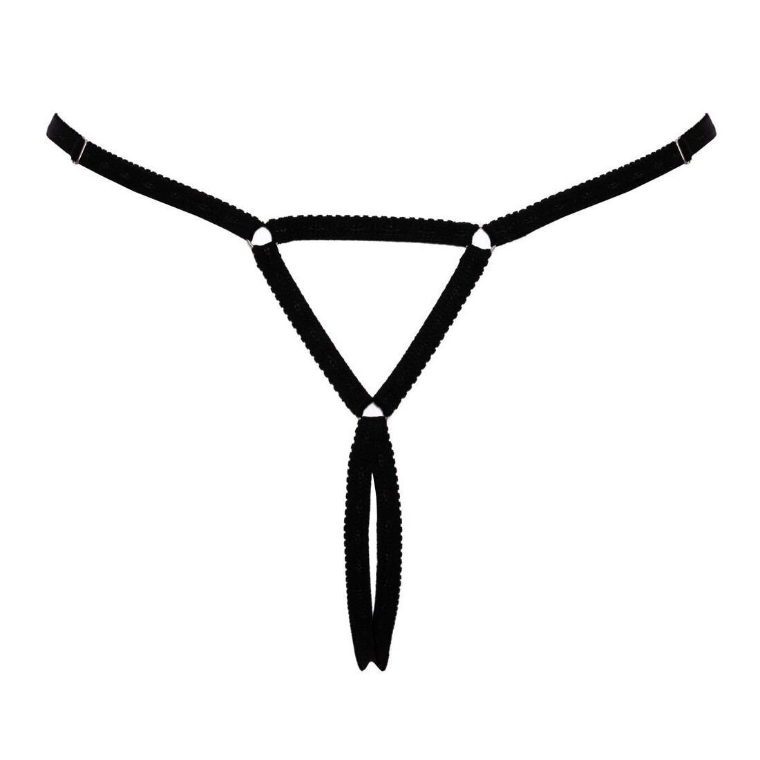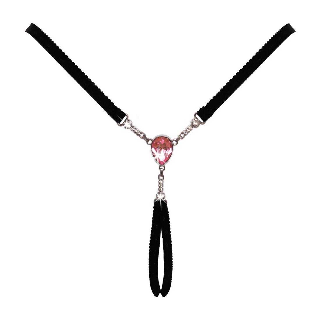 Perizoma nero glamour senza cavallo di Cottelli LINGERIE, realizzato con cinghie morbide e molto elastiche, con un triangolo aperto sul retro. Elaborato sul davanti con una grande gemma rosa e una catena argentata tempestata di pietre scintillanti. Regolabile ai lati della cintura. Seducente apertura sul cavallo.