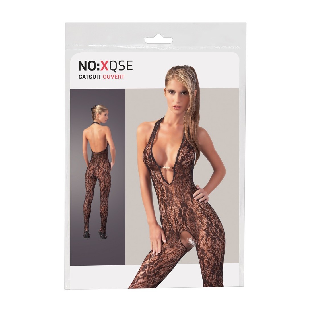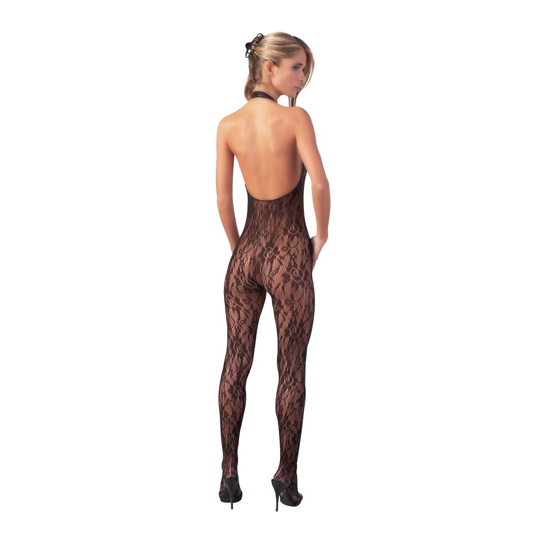 Black Lace Catsuit con cavezza e tre perle alla scollatura. Aprire il passaggio. con il piede. 100% poliammide. TAGLIA S/M.