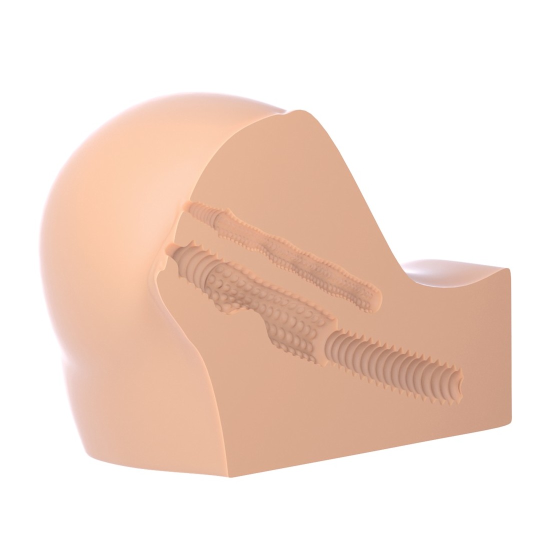 Autentico e maneggevole masturbatore con 2 strette aperture: vagina e ano. Entrambe le aperture hanno i loro canali del piacere con diverse strutture di nub e groove. Con le labbra pronunciate e la pelle morbida e realistica. In piccolo formato, ideale per i viaggi.