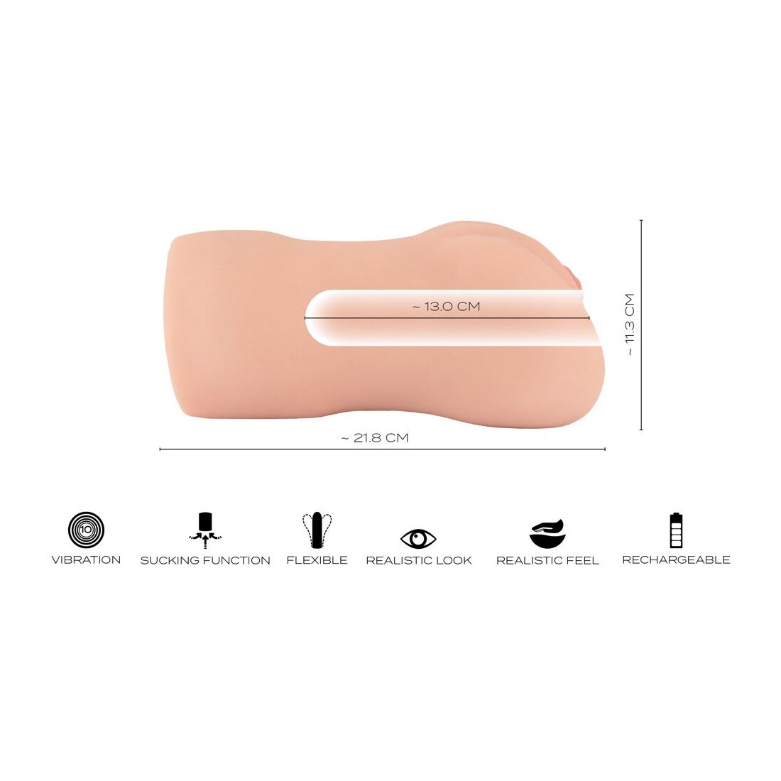 RealMasturbator Succhia e Vibra di Realistixxx con una vagina realistica e dettagliata. L'interno scivoloso è dotato di scanalature per il massaggio intensivo e di una potente tecnologia: vibrazione e funzione di aspirazione. Per un'intensa esperienza reale con la semplice pressione di un pulsante! 10 modalità di vibrazione e 3 di aspirazione offrono una piacevole varietà. Tutto può essere controllato direttamente sul pratico toy, separatamente o in un'eccitante combinazione.