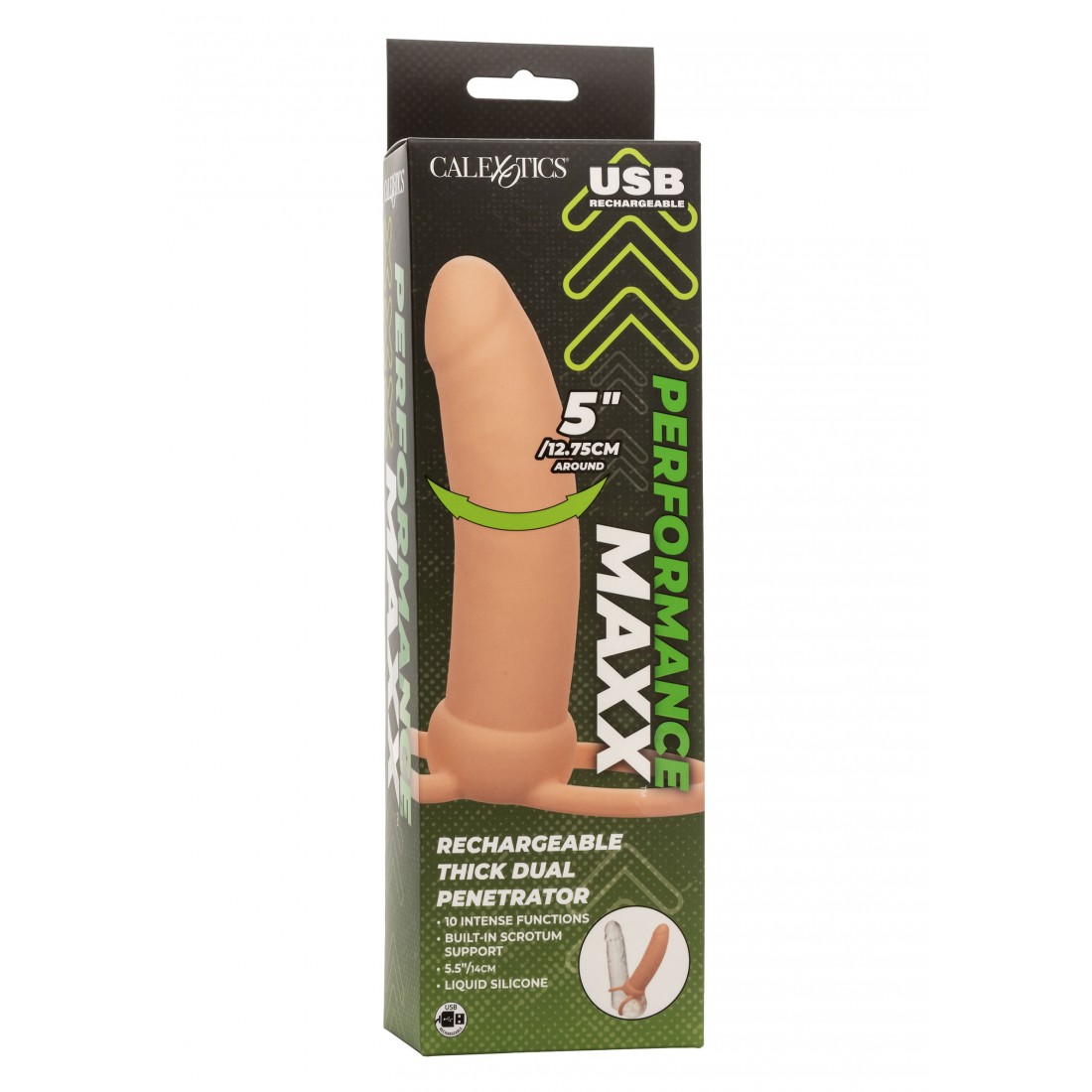 Introduciamo il Performance Maxx Rechargeable Thick Dual Penetrator, una sonda versatile che migliora le esperienze di doppia penetrazione. Ideale per incontri intensi, combina potenza, piacere e comfort, con 10 funzioni di vibrazione, pulsazione e escalation. La sua circonferenza migliorata, con un diametro di 5" / 12,75 cm, intensifica le sensazioni. Realizzato in silicone liquido, è morbido, liscio, resistente e impermeabile (classificato IPX7). L'anello scrotale integrato aggiunge supporto e stimolazione. Per comodità, riprende l'ultima funzione utilizzata e include una funzione di blocco per viaggiare. Ricaricabile tramite USB, si carica completamente in 1,5 ore, offrendo 60 minuti di piacere ad alta intensità o 90 minuti con impostazioni più basse. Sperimenta un piacere profondo con Performance Maxx Rechargeable Thick Dual Penetrator.