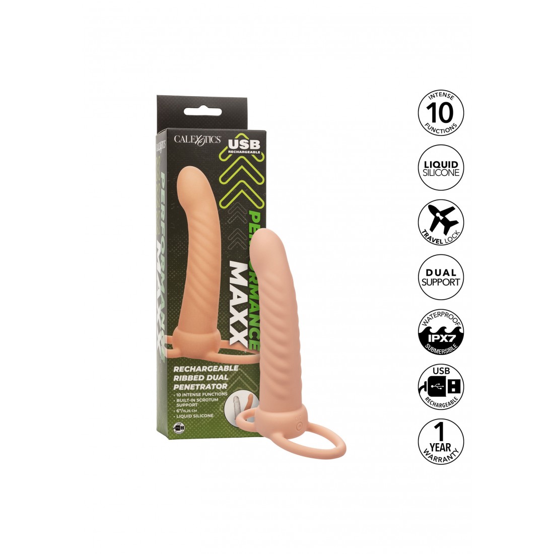 Presentiamo il Performance Maxx Rechargeable Ribbed Dual Penetrator, una sonda versatile progettata per esperienze intense di doppia penetrazione. Con 10 funzioni di vibrazione, pulsazione ed escalation, offre avventure personalizzate, dalle tenere carezze alle potenti onde di piacere. La sua texture a coste intensifica le sensazioni, mentre la realizzazione in Silicone Liquido garantisce morbidezza e durata. Impermeabile con valutazione IPX7, è pronto per l'esplorazione in diversi contesti. Dotato di anello scrotale integrato, chip di memoria e funzione di blocco viaggio, assicura un godimento senza interruzioni e sicuro. Ricaricabile tramite USB, offre 60 minuti di piacere ad alta intensità o 90 minuti con impostazione più bassa dopo soli 1,5 ore di ricarica. Libera la tua curiosità con il Performance Maxx Rechargeable Ribbed Dual