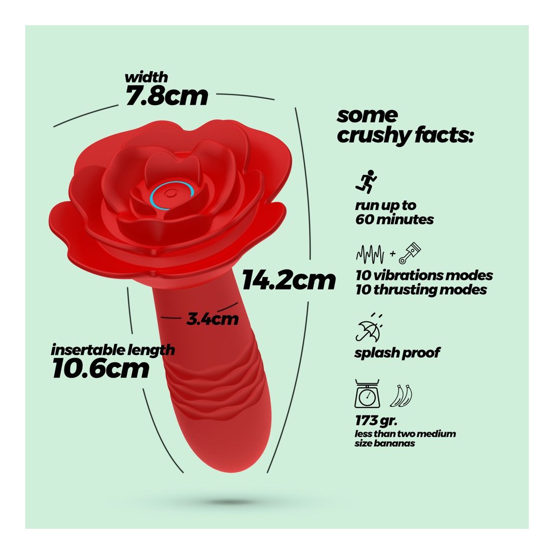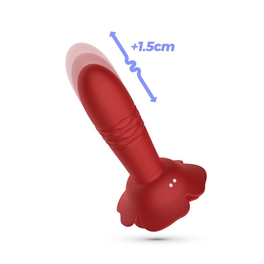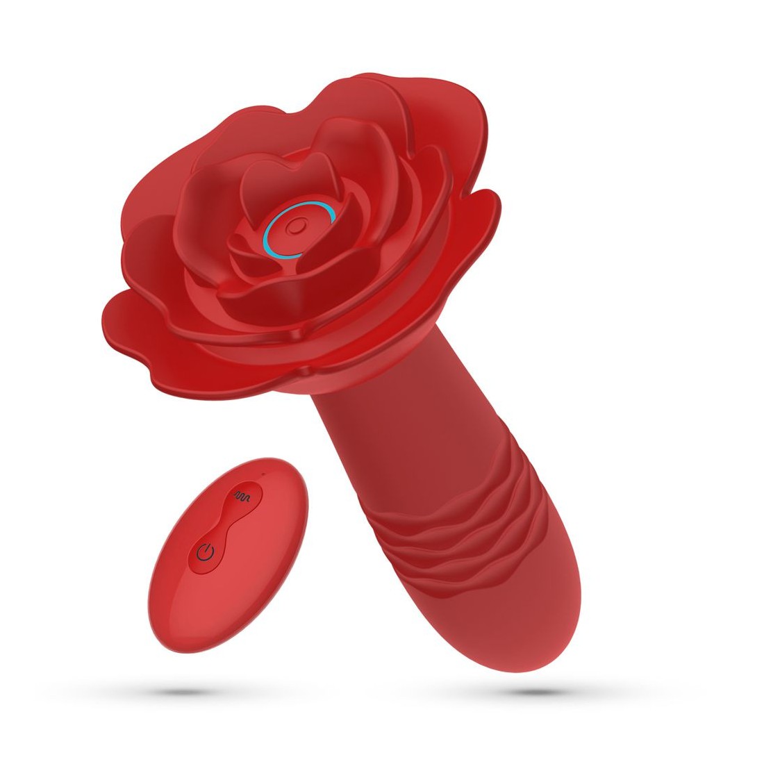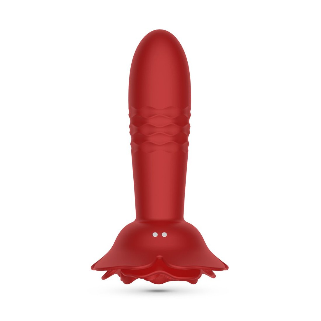 Stimolatore anale prostatico rosa rossa in silicone con telecomando e funzione di spinta ricaricabile USB