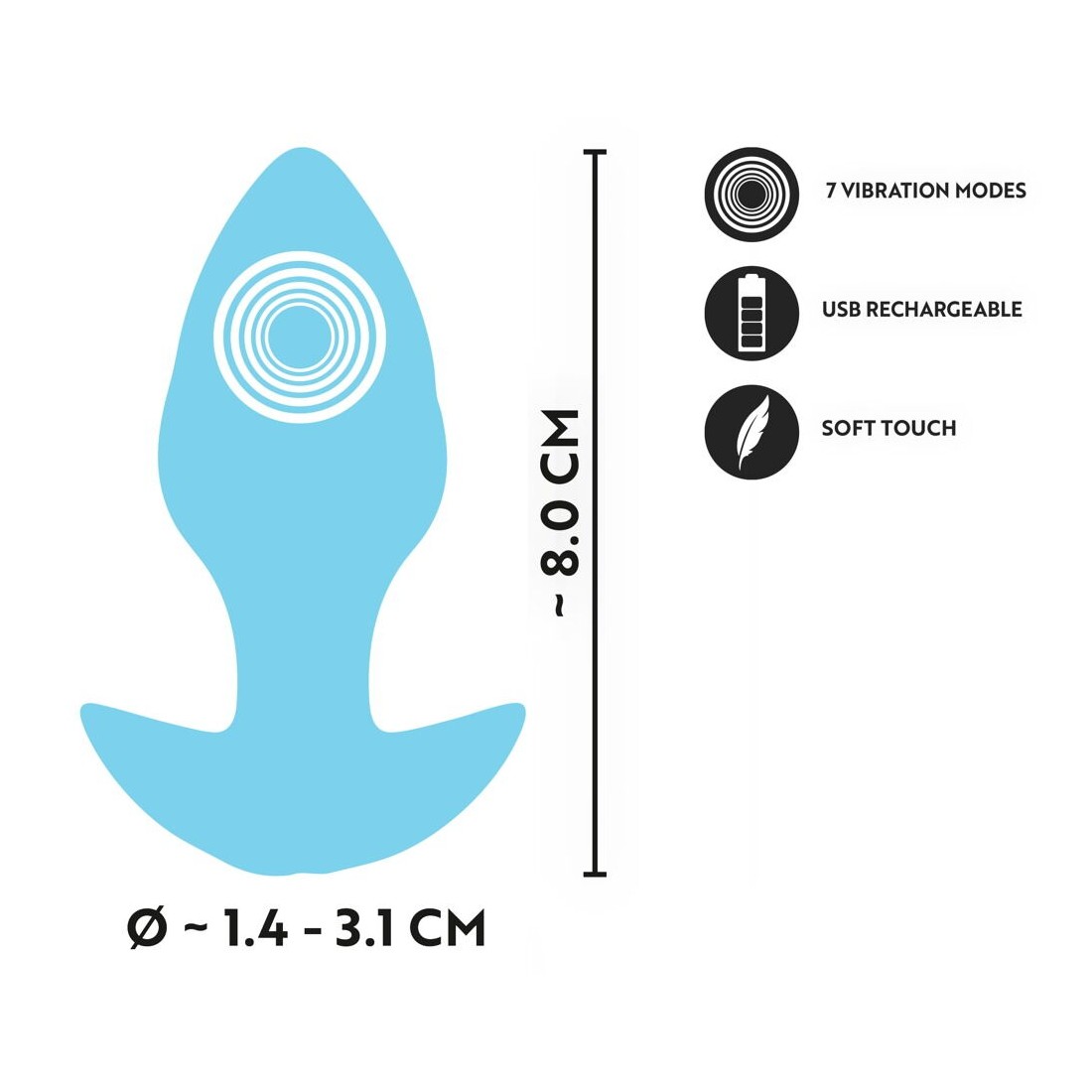 Il Mini Butt Plug vibrante Blue di Cuties è l'avventura sfrontata per chi vuole scoprire il piacere anale in modo giocoso. Con il suo design leggero come una piuma e la punta stretta, il plug compatto in silicone scivola come per magia e rende l'inserimento super facile. Le delicate strutture a onda solleticano esattamente i punti più piacevoli. 7 giocose modalità di vibrazione assicurano una varietà di sensazioni e un piacere senza precedenti. Basta premere il pulsante!