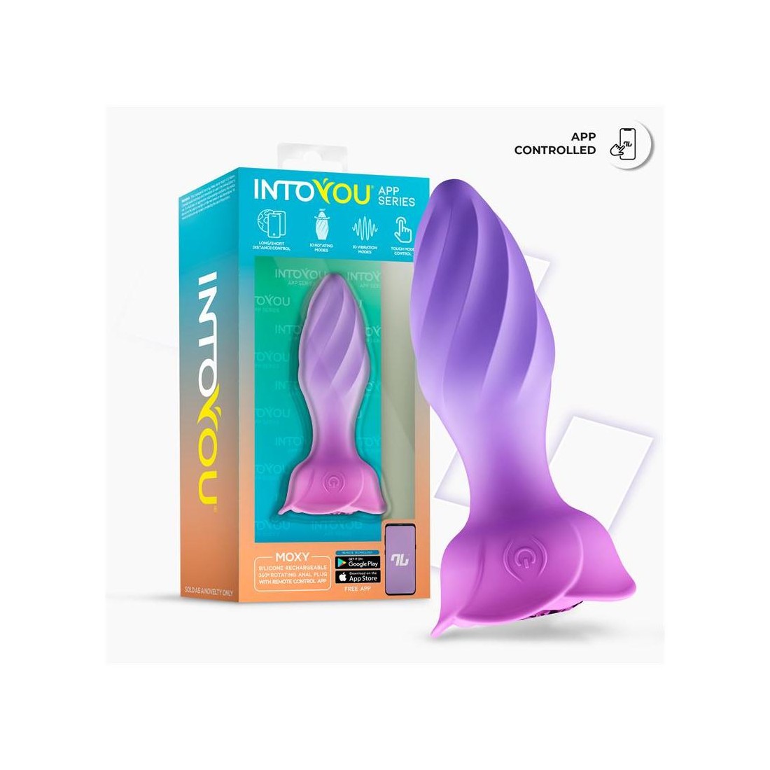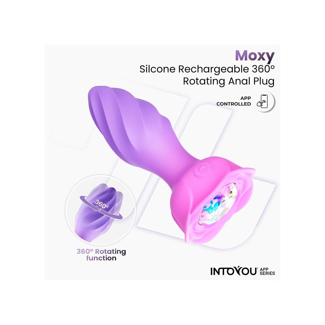 Moxy è un plug anale molto speciale, caratterizzato da una forma a spirale e dalle tonalità più erotiche e belle di lilla e rosa. Ha anche una base a forma di rosa con un gioiello multicolore brillante per un incredibile look esterno.