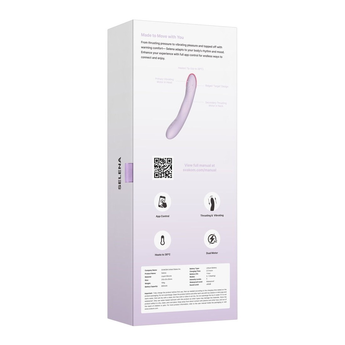 Il calore e le vibrazioni pulsanti sono disponibili in 5 modalità e 5 intensità. Possono essere facilmente controllati tramite il giocattolo, semplicemente premendo un pulsante. I 2 motori forniscono una potenza affidabile, silenziosa e discreta! Per ancora più opzioni, l'app SVAKOM per smartphone offre il controllo remoto e la modalità touch, oltre a regolazioni individuali della modalità e sincronizzazione con musica, suoni e contenuti visivi (video). L'app lo rende perfetto anche per il gioco a lunga distanza e le interazioni con un partner.