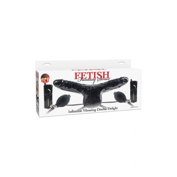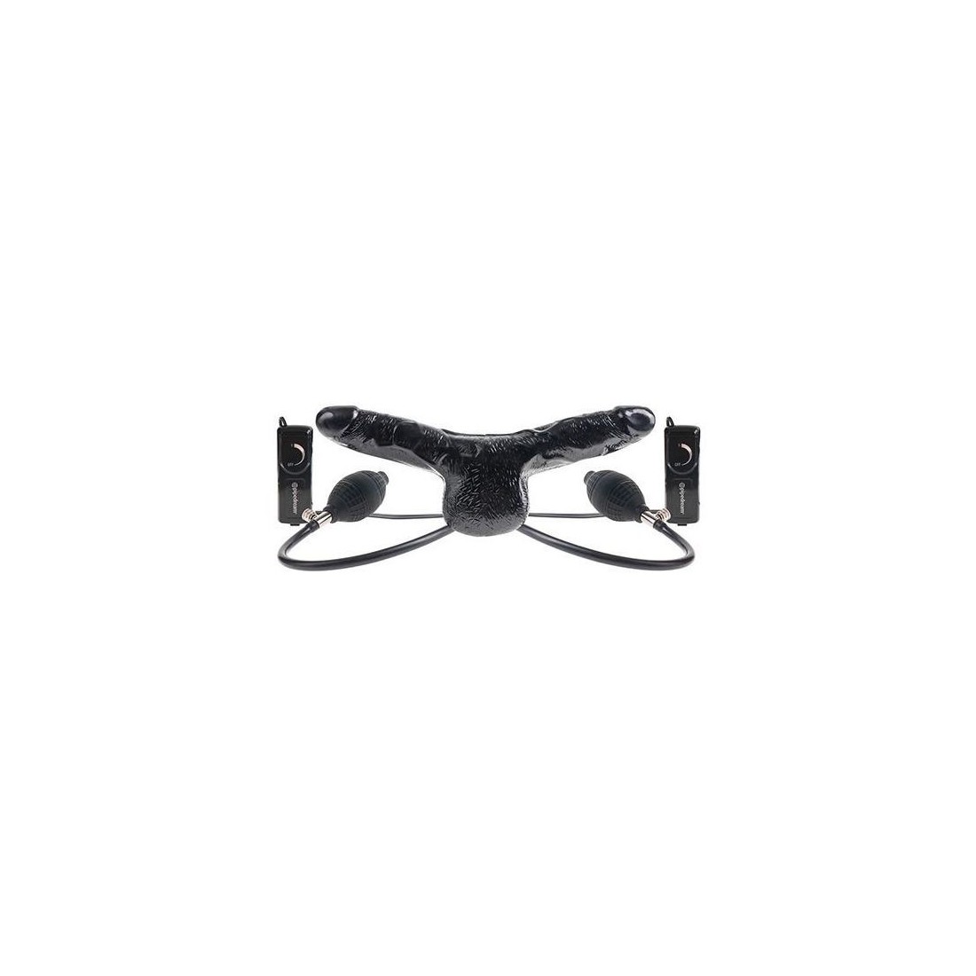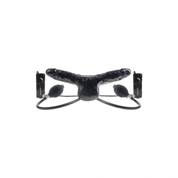 Doppio fallo vibrante gonfiabile dildo indossabile stimolatore pene realistico. materiale: Pvc Vibrazione: Si Diametro: 4.8 cm Lunghezza: 35.5 cm Penetrazione: 13.9 cm Batterie: 4 x AA non incluse Colore: NeroProduttore: Fetish fantasy series.
