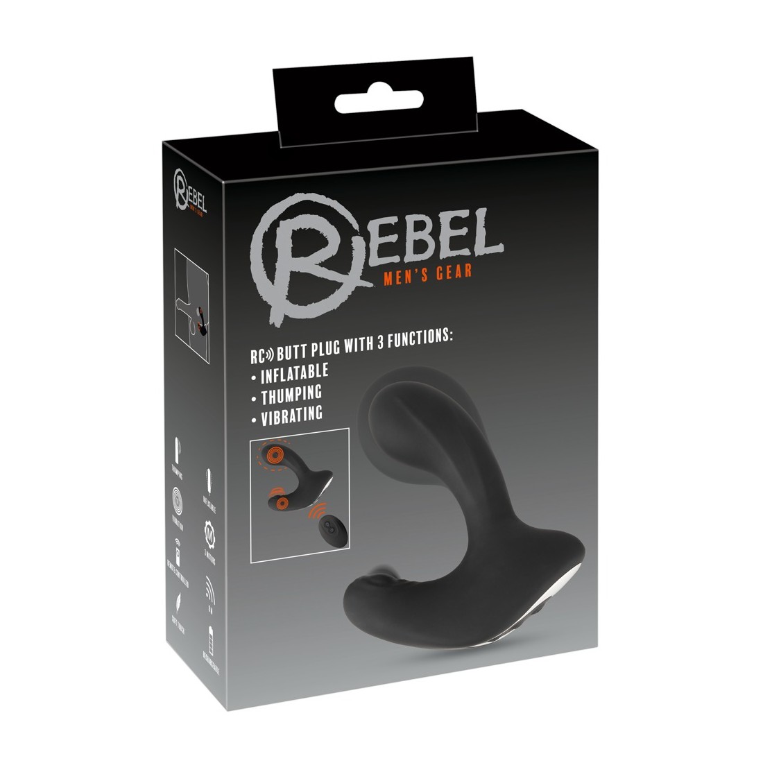 Vibro-Analplug RC Butt Plug di forma ideale con 3 funzioni di Rebel con funzione innovativa di bussare nel divaricatore del perineo. 3 potenti motori forniscono un intenso divertimento anale.