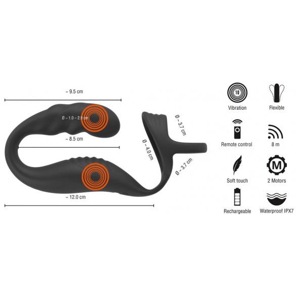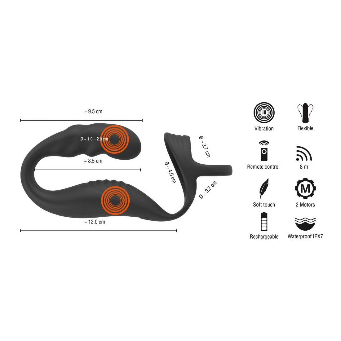 Il Cock Ring with RC Prostate Plug di Rebel combina un'imbracatura per pene/testicoli con un vibratore perineo e prostatico. Per un piacere intenso a 360° sul pene e nella parte posteriore del pene! I due anelli elastici per il pene e i testicoli assicurano che i vibratori per la prostata e il perineo si inseriscano saldamente ed esercitino una trazione eccitante. Questo permette anche di indossare il vibratore per periodi più lunghi, ad esempio durante il sesso. Inoltre, i due anelli sostengono efficacemente l'erezione.