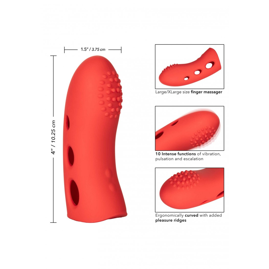 l Mini Marvels Marvelous Arouser mette il piacere da far tremare le ginocchia a portata di mano! Il vibratore da dito totalmente autonomo entusiasmerà sicuramente con la stimolazione puntuale e le vibrazioni a copertura totale. L'atmosfera delle dita da grandi a extra grandi soddisfa ogni tua fantasia con 10 funzioni di vibrazione e texture stuzzicante. La forma sagomata delle dita e il silicone ultra morbido sono realizzati per esplorare i punti deboli sensuali e individuare con facilità i desideri intimi. La superficie delicatamente strutturata e il corpo sagomato ti consentono di fornire vibrazioni emozionanti da qualsiasi angolazione desideri. Trova la tua impostazione preferita toccando un pulsante mentre scorri tra 10 potenti funzioni di vibrazione, pulsazione ed escalation. I pulsanti di controllo facili da toccare ti consentono di godere di un controllo senza frustrazione. Abbraccia fino a 55 minuti con il piacere della vibrazione a bassa velocità o 75 minuti con la stimolazione ad alta intensità. Ricarica la tua passione in solo 1 ora collegando il cavo USB in dotazione alla porta di ricarica autosigillante sul retro del massaggiatore. Il massaggiatore sottile e discreto da 4 pollici lo rende il compagno di viaggio perfetto, permettendoti di abbracciare un piacere irradiante ovunque ti portino le tue fantasie.