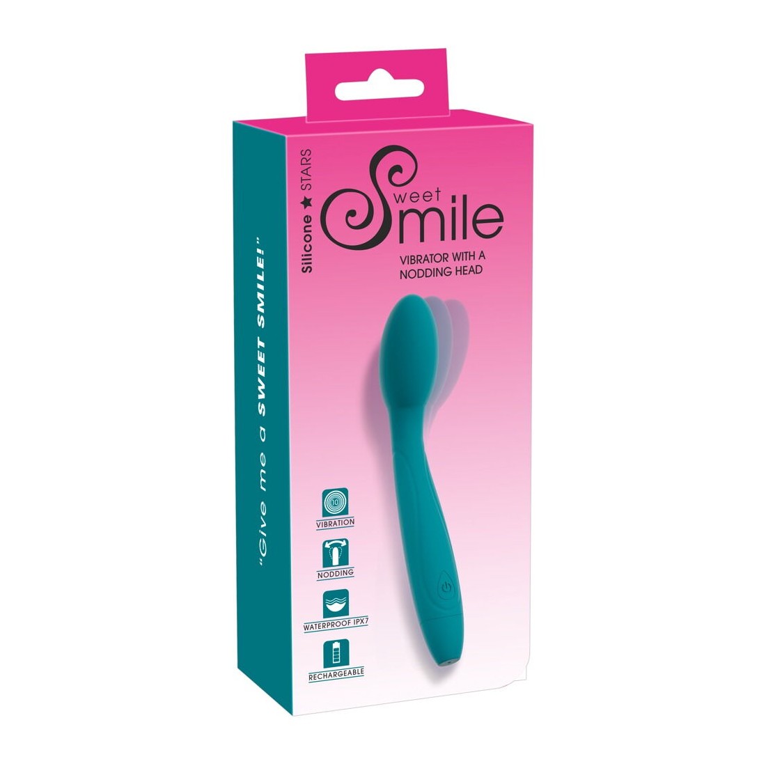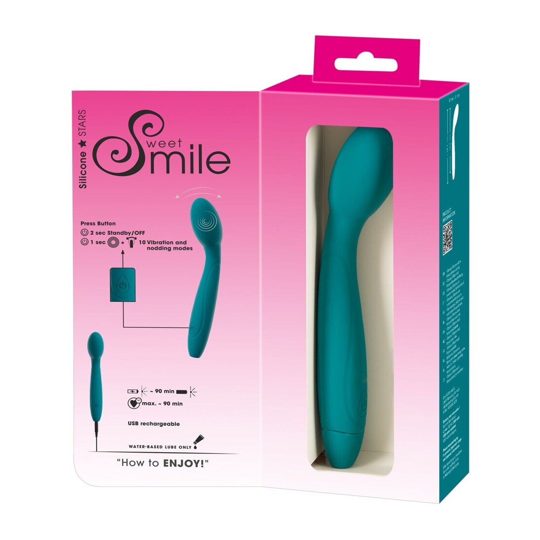 Il vibratore super maneggevole e leggero con testa annuente di Sweet Smile vi delizierà con la sua testa massaggiante perfettamente curva e pronunciata. Non solo le vibrazioni si concentrano lì, ma grazie alla funzione di annuire, si muove anche avanti e indietro a velocità pulsante. Non solo coccola squisitamente la vagina e la zona G. La morbida testa vibromassaggiante accarezza anche ogni altro punto caldo del corpo. Un perfetto punto di piacere da soli o in coppia!