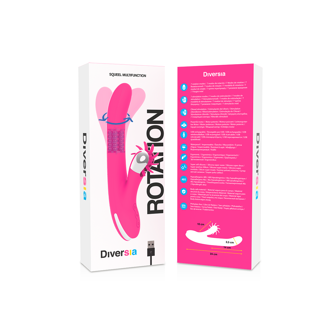 Diversia lancia la nuova collezione di vibratori e rotatori che hanno motori di nuova generazione, ottenendo un aumento di potenza con una maggiore durata. Il sistema multifunzione Squeel incorpora diversi schemi di movimento per un'incredibile stimolazione del clitoride. La sua finitura in silicone super morbido di alta qualità è un vantaggio per gli orgasmi più esigenti. Tutti i vibratori e i rotatori della nuova collezione Diversia si ricaricano tramite USB, sono eleganti e la loro finitura in silicone premium, super morbida e ipoallergenica è un plus per gli orgasmi più esigenti.