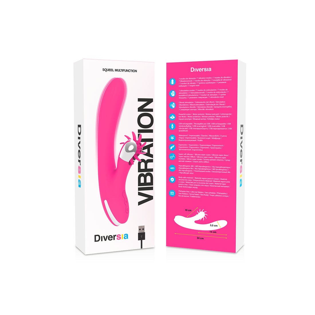 Diversia lancia la nuova collezione di vibratori e rotatori che hanno motori di nuova generazione, ottenendo un aumento di potenza con una maggiore durata. Il sistema multifunzione Squeel incorpora diversi schemi di movimento per un'incredibile stimolazione del clitoride. La sua finitura in silicone super morbido di alta qualità è un vantaggio per gli orgasmi più esigenti. Tutti i vibratori e i rotatori della nuova collezione Diversia si ricaricano tramite USB, sono eleganti e la loro finitura in silicone premium, super morbida e ipoallergenica è un plus per gli orgasmi più esigenti.