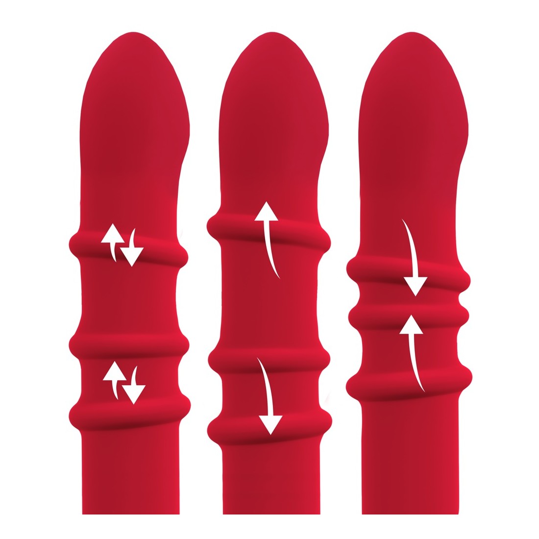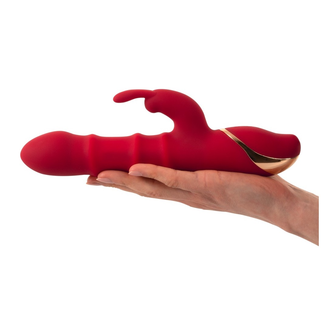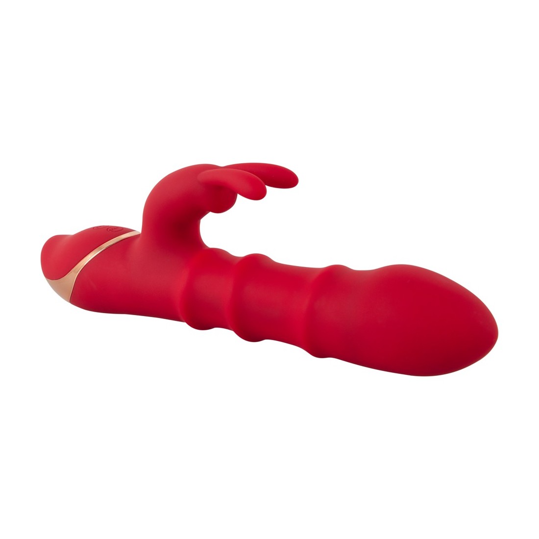Per la sofisticata doppia stimolazione, sono disponibili 3 modalità di massaggio degli anelli mobili nell'asta e 10 modalità di vibrazione nella punta rigonfia e nel coniglietto del clitoride. Le funzioni possono essere comodamente controllate direttamente sul toy con la semplice pressione di un pulsante, separatamente o combinate in modo eccitante. Due potenti motori garantiscono una potenza affidabile.