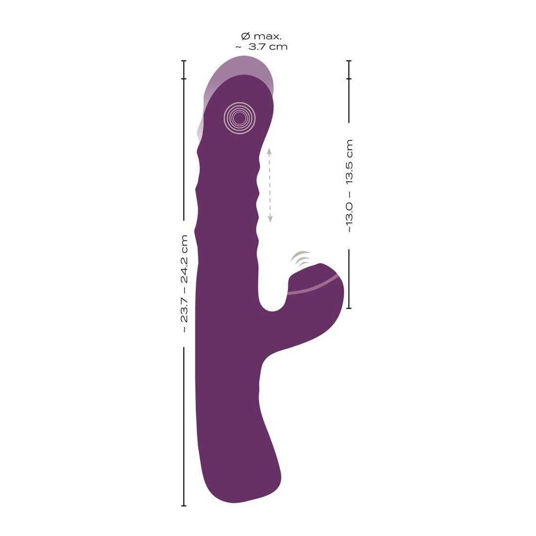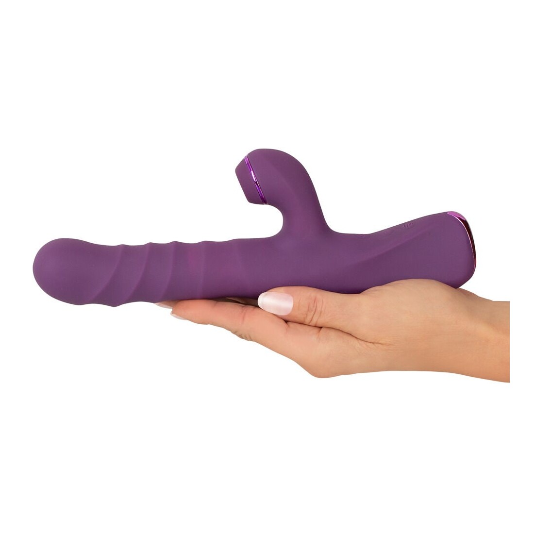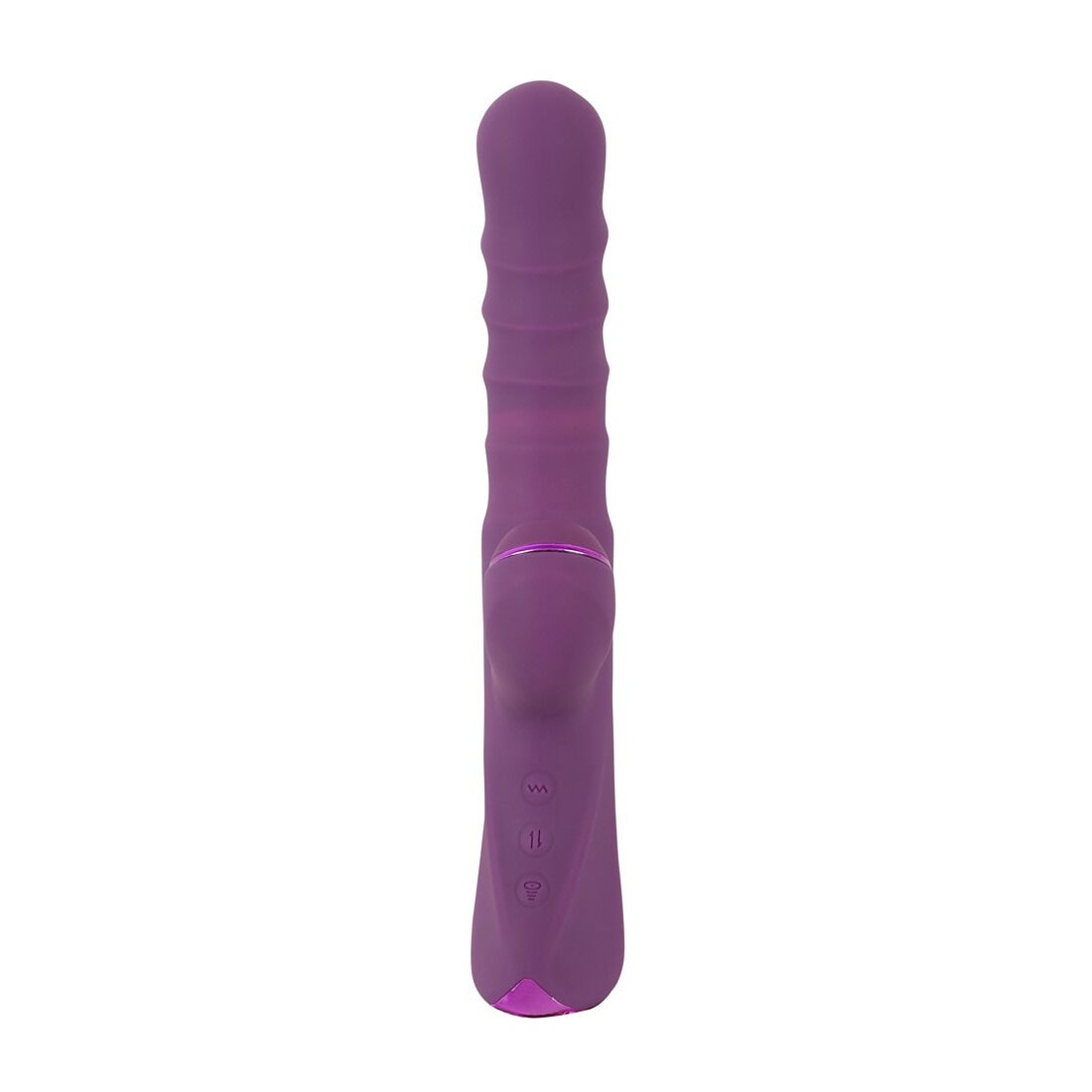 3 motori silenziosi e potenti forniscono una potenza affidabile per una stimolazione a tutto tondo. 10 modalità di vibrazione nella punta rigonfia e 3 velocità di spinta nell'asta, nonché 10 modalità della funzione di pulsazione (thumping) nello stimolatore del clitoride possono essere comodamente controllate con i pulsanti sul toy. Separati o combinati in modo eccitante.