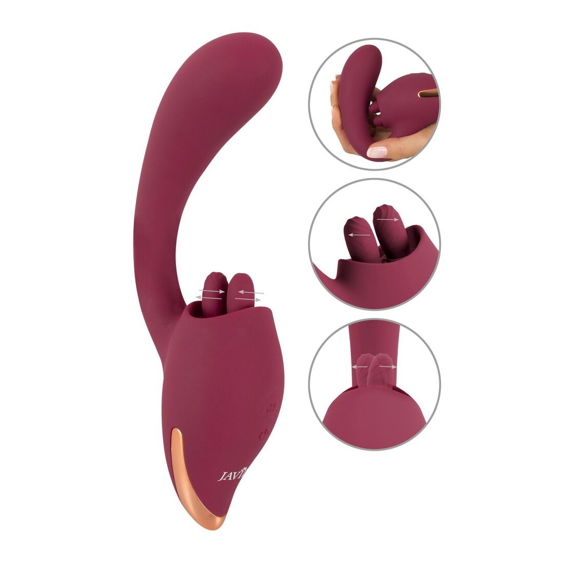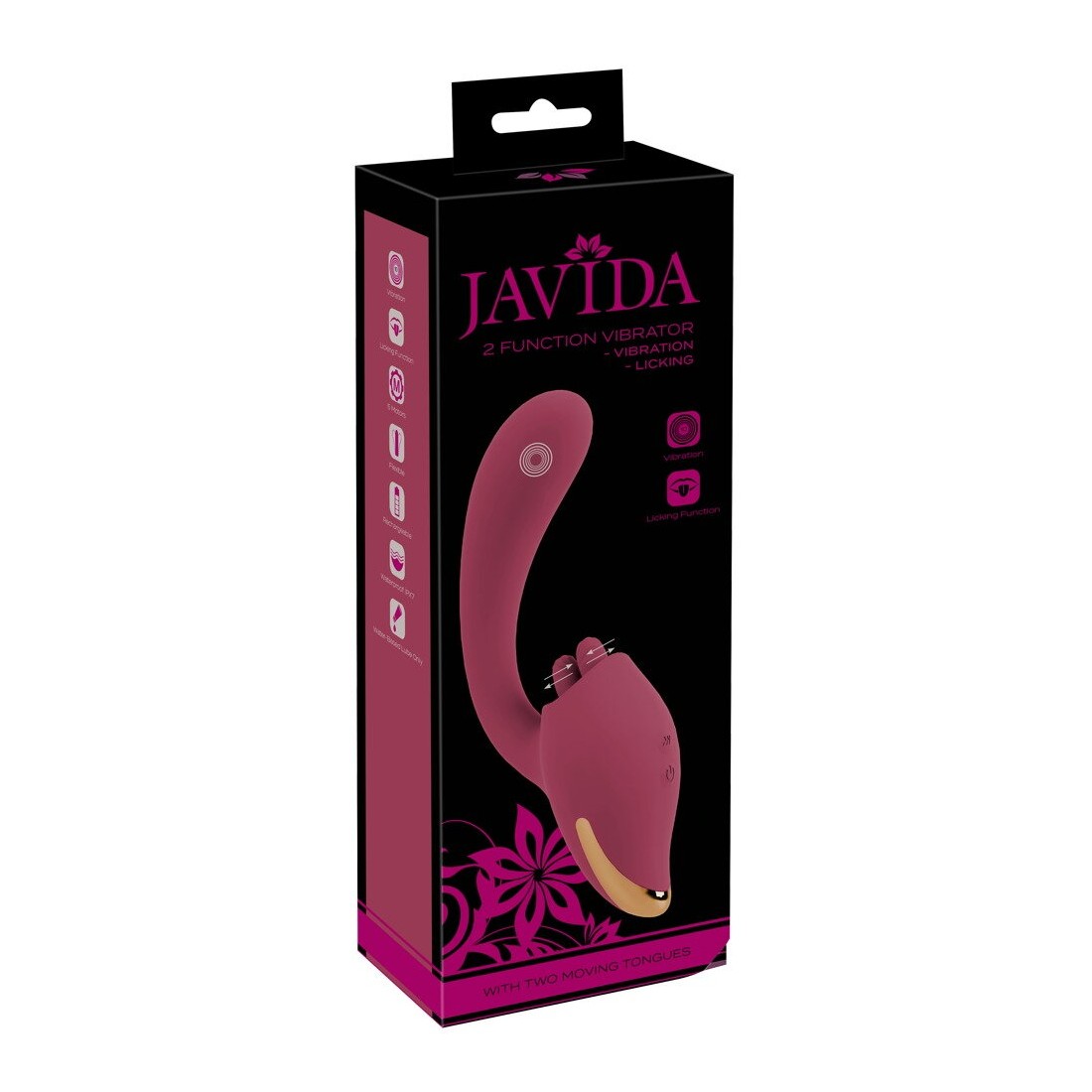 L'ingegnoso vibratore a 2 funzioni di Javida stimola due volte: con vibrazioni intense la vagina e la zona G e allo stesso tempo il clitoride con l'innovativa funzione di leccaggio. Due lingue morbide e delicatamente strutturate si muovono avanti e indietro in direzioni opposte nello stimolatore del clitoride. Per sensazioni simili al miglior sesso orale!
