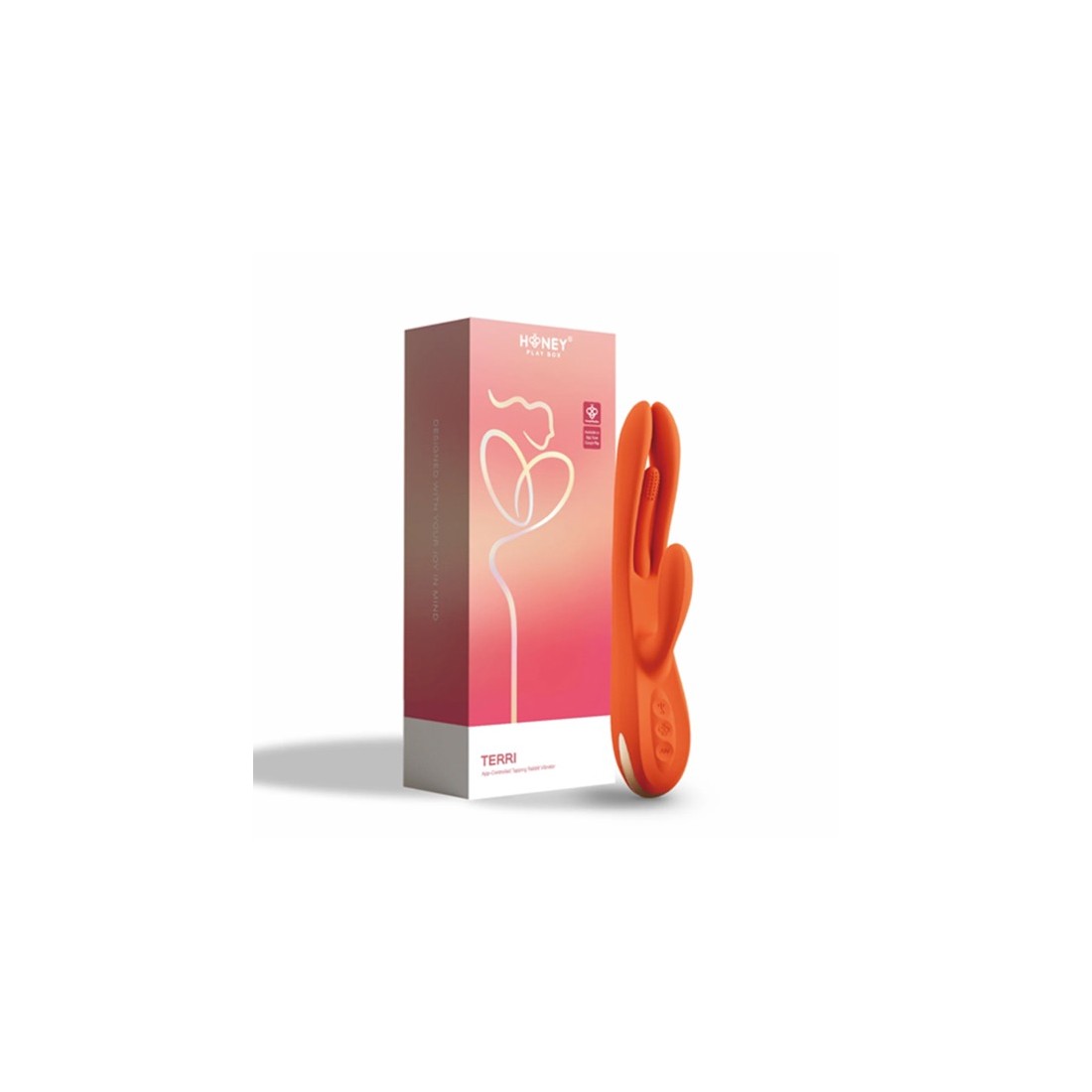 Terri App-controlled Kinky Finger Tapping Rabbit Vibrator Orange vibratore con battitore e APP