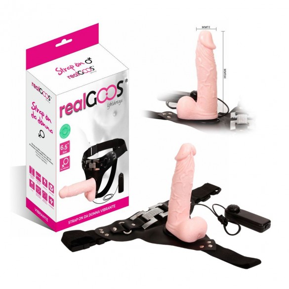 realGOOS® BW-022036 STRAP ON FALLO REALISTICO PER LEI DA DONNA INDOSSABILE CON VIBRAZIONE VIBRATORE VIBRANTE A VELOCITÀ REGOLABILE