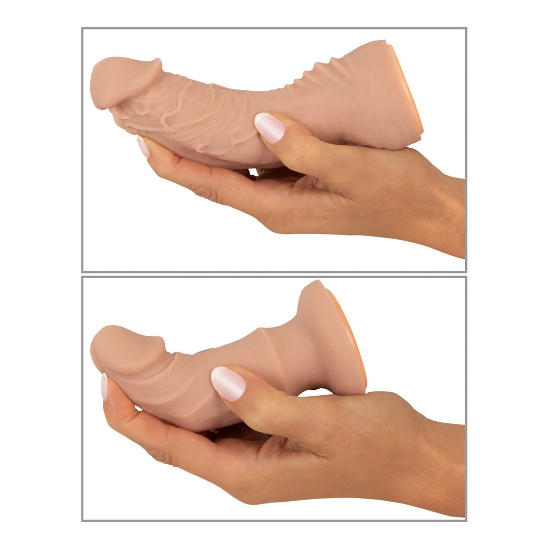 Dildo 2: lunghezza totale 12,3 cm, lunghezza di inserimento 10,5 cm, Ø massimo 3,8 cm. Peso 108 g.