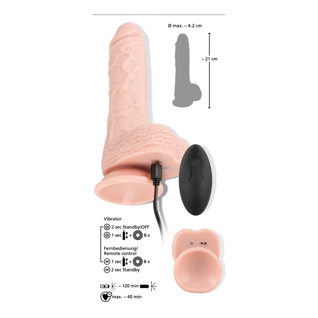 Vibratore rotante shock RC Medical Silicone Vibrator in natura-identico look pene con forte base di aspirazione sotto i testicoli grippy che si attacca saldamente e saldamente a qualsiasi superficie liscia, rendendo possibile il piacere a mani libere.