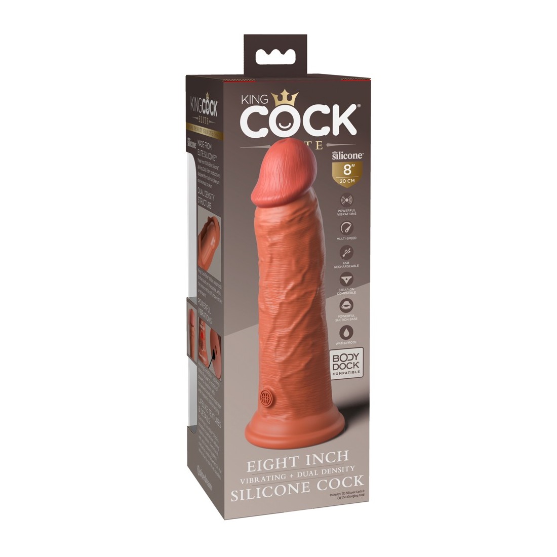 Vibratore naturale ricaricabile 8" vibrante + Dual Density Silicone Cock di King Cock Elite in look iper-realistico del pene fatto di materiale siliconico a doppia densità che si sente come la vera pelle. Il vibratore stesso (come un vero membro eretto) ha un'asta ferma, ma flessibile che rende l'esperienza di piacere il più realistica possibile.