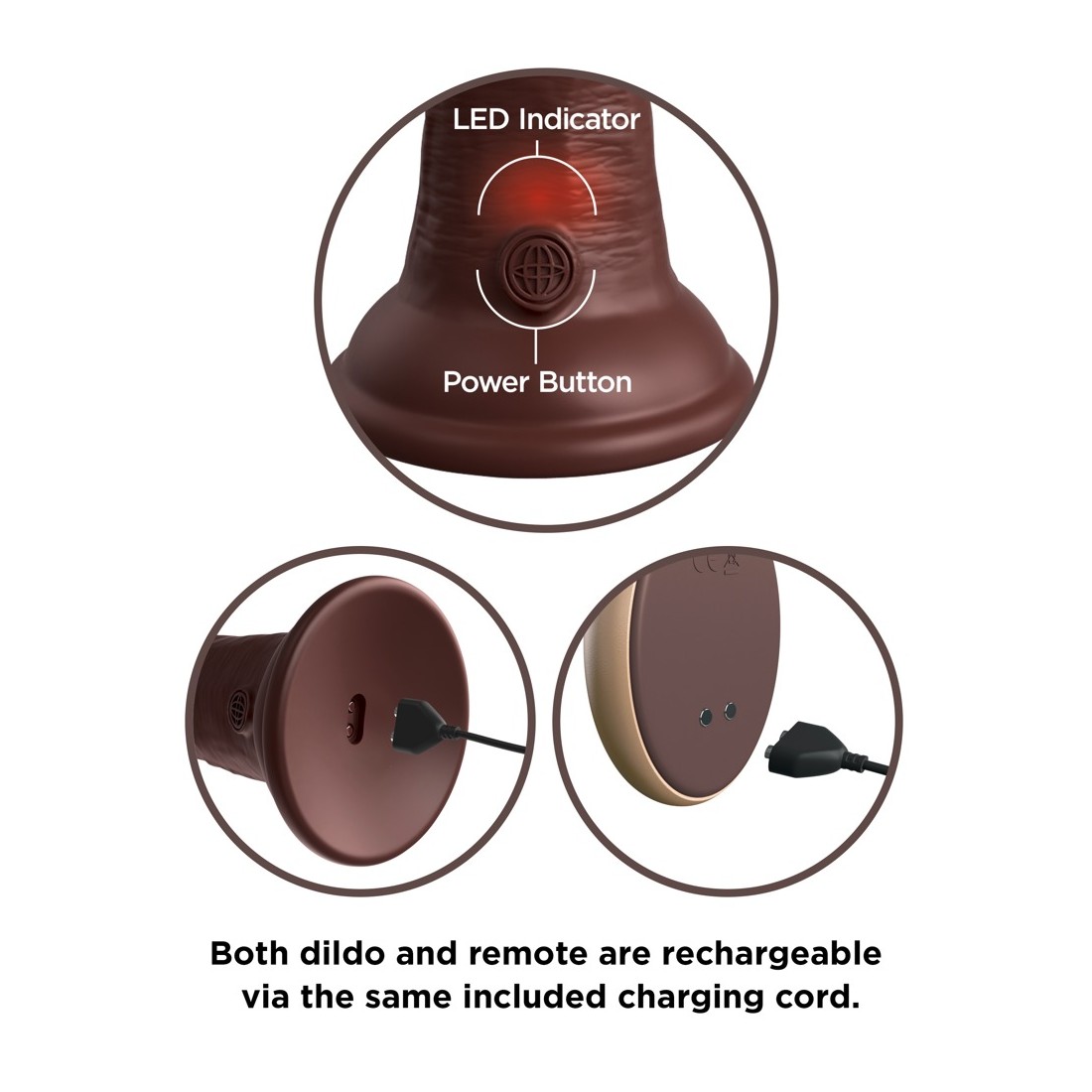Vibratore naturale ricaricabile 9" vibrante + Dual Density Silicone Cock con telecomando da King Cock Elite in look iper-realistico pene fatto di materiale in silicone a doppia densità che si sente come la pelle reale. Il vibratore stesso (come un vero membro eretto) ha un'asta ferma ma flessibile che rende l'esperienza di piacere il più realistica possibile.