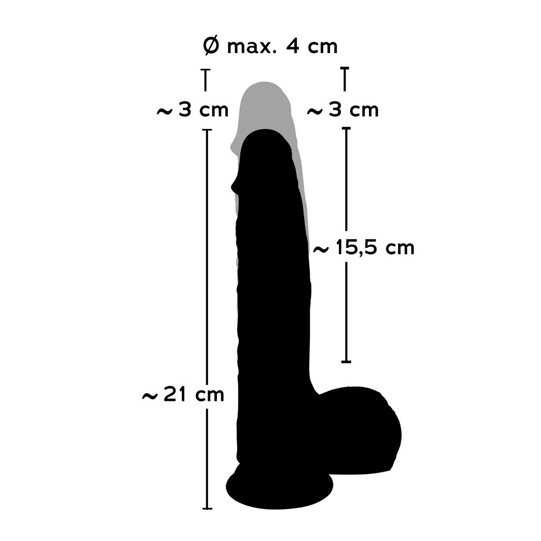 Lunghezza totale da 21 cm a 24 cm. Profondità di inserimento da 15,5 cm a 18,5 cm. Ø da 3 cm a 4 cm. Silicone, PU.