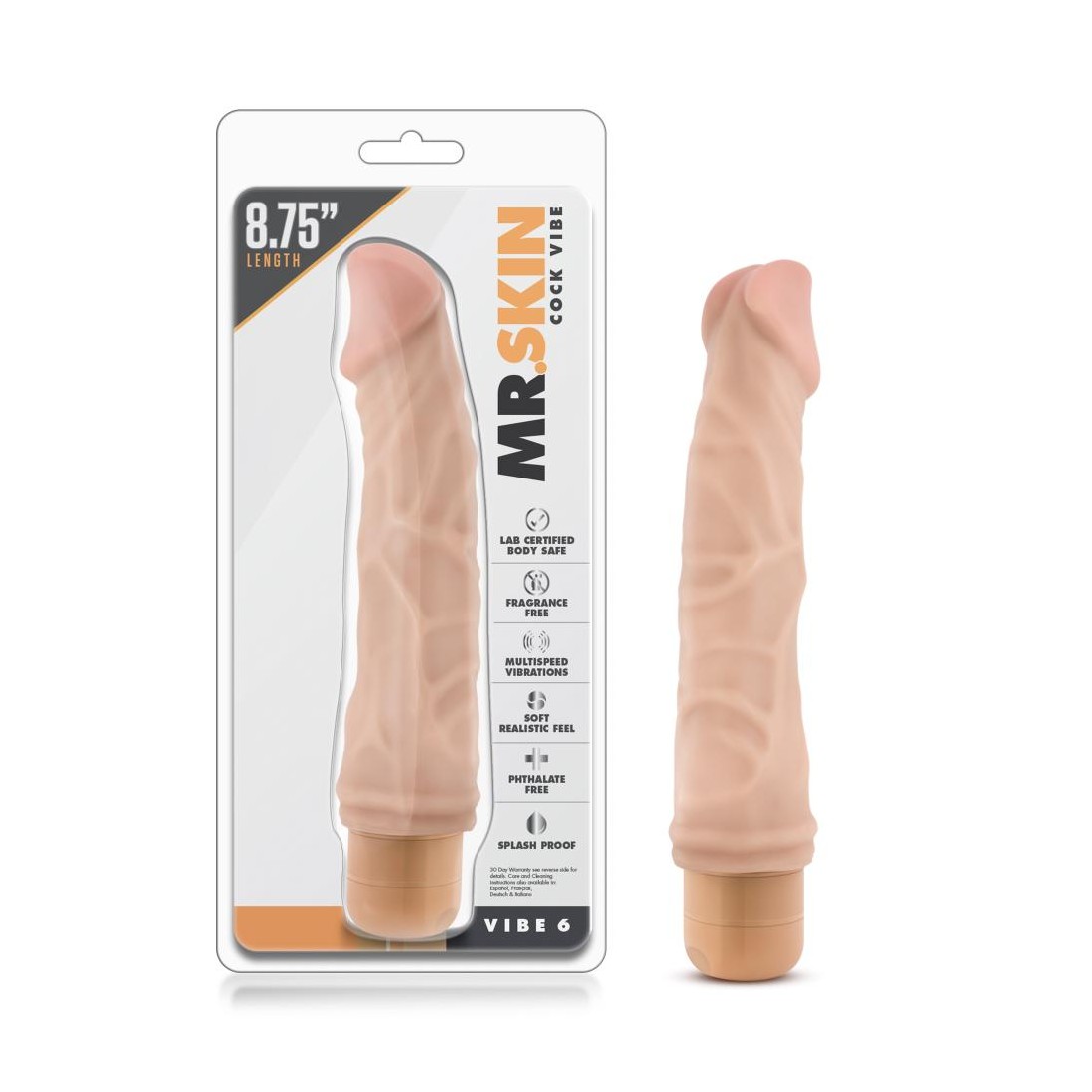 Il dottore è qui! Il Dr. Skin Cock Vibe 6 è un vibratore lungo e realistico con una testa prominente. Controlla le potenti e pulsanti vibrazioni del giocattolo con la comoda base girevole. Il Dr. Skin Vibe 6 è impermeabile, quindi è perfetto per la doccia e il bagno. Realizzato in PVC non poroso e sicuro per il corpo, questo vibratore non contiene ftalati, lattice, paraffine o fragranze chimiche. Per la pulizia, utilizzare acqua e sapone o un detergente per giocattoli, quindi lasciare asciugare all'aria.
