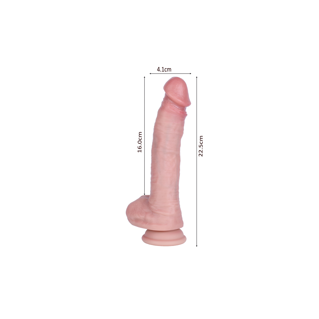 Con una lunghezza totale di 22,5 cm cm e una lunghezza inseribile da 16 a 17,2 cm (con funzione di spinta), offre una sensazione naturale grazie al suo silicone morbido e sicuro per il corpo.